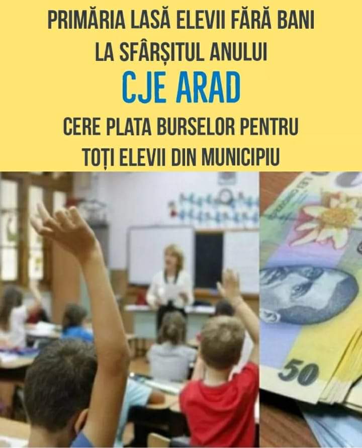 Consiliul Județean al Elevilor Arad atrage atenția asupra unui proiect de hotărâre recent supus la vot în cadrul ședinței Consiliului Local Municipal Arad. Elevii din învățământul preuniversitar arădean nu vor mai beneficia de burse de performanță sau burse de merit în acest an. Asta după ce Guvernul a decis să crească cuantumul minim al burselor sociale, de la 60 la 100 de lei, fără să asigura și o “acoperire” financiară a măsurii. Astfel, primăriile din toată țara au fost nevoite să găsească o sursă de finanțare a creșterii burselor sociale, iar primăria din Arad a decis că va folosi banii rămași pentru burse de merit și de performanță.