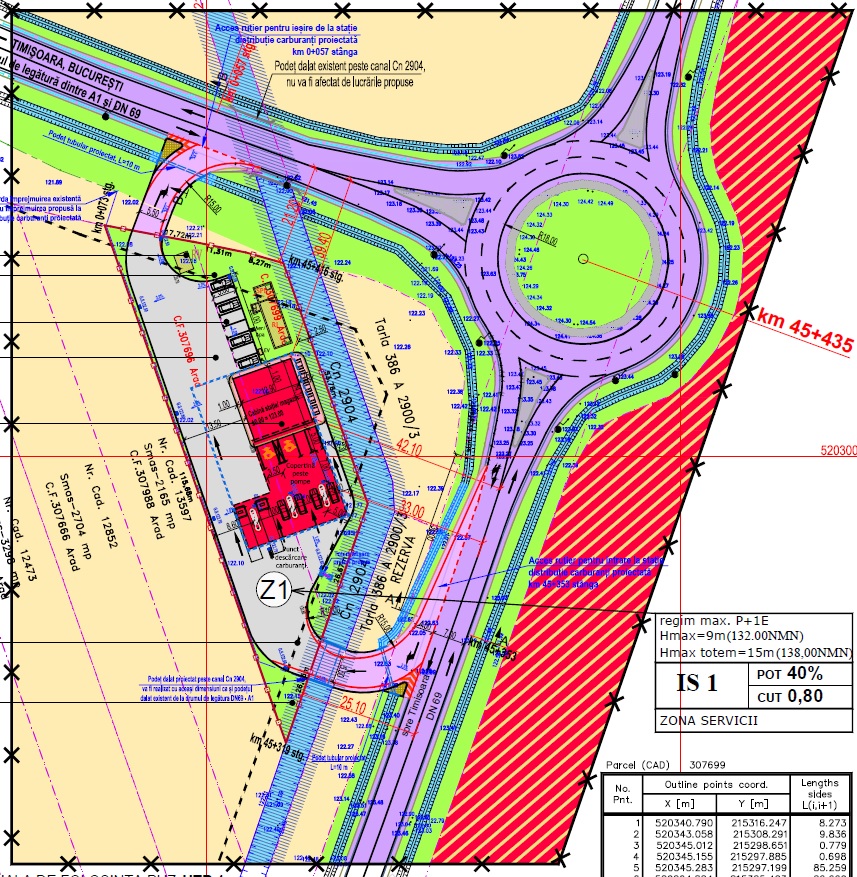 „Clădirile propuse vor fi destinate activității de distribuție carburanți și comerț, alimentație publică (mic restaurant, cafenea etc.) și constau în clădiri principale și copertină. În jurul construcţiilor propuse se vor realiza alei pietonale. În incintă, prin specificul activităților propuse, va fi amenajată o platformă carosabilă unitară și de parcare autovehicule clienți și angajați. Zona liberă din jurul clădirilor și platformelor, având o pondere de minim 10,00% din suprafaţa terenului, va fi amenajată ca zonă verde” – se detaliază în documentaţia urbanistică.