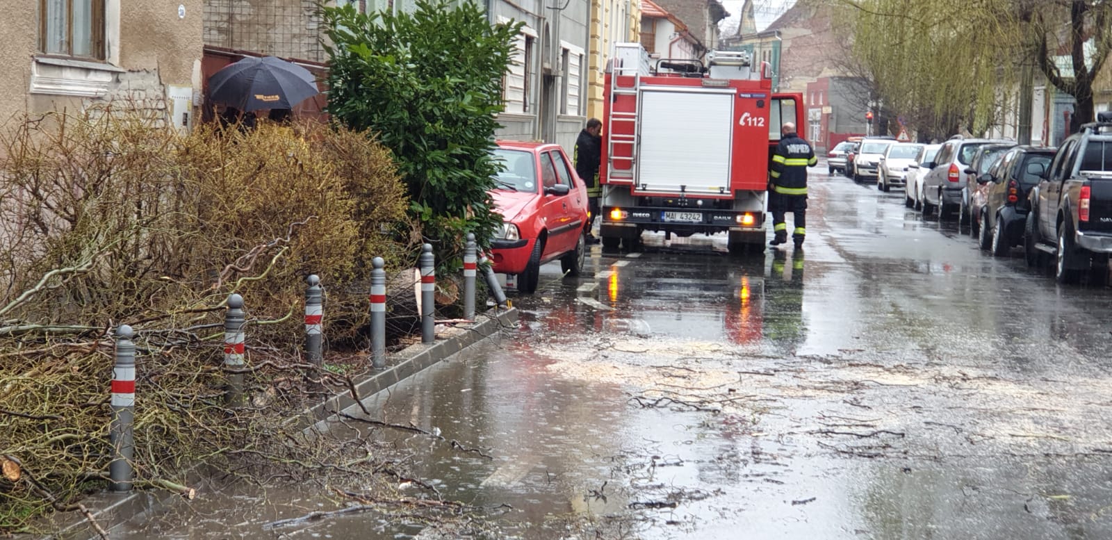 ARAD. La fața locului au fost solicitați pompierii. Un echipaj din cadrul Detașamentului de Pompieri Arad a intervenit și a tăiat copacul cu drujba. În urma incidentului, strada Octavian Goga a fost blocată până la terminarea intervenției pompierilor.