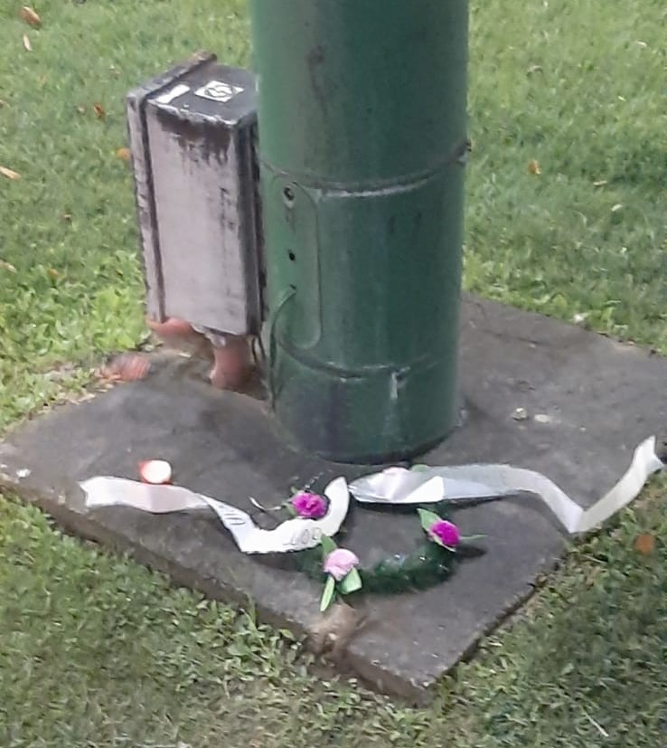 Coroană de flori depusă la macazul de tramvaie de la Podgoria