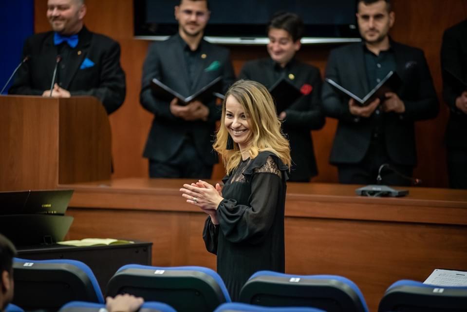 ARAD. Comunitatea academică a Universității „Aurel Vlaicu” din Arad s-a bucurat, la finele lunii ianuarie, de un spectacol de muzică vocală și corală din creația muzicală românească, concert susținut de Corul bărbătesc Academica al Facultății de Științe Umaniste și Sociale condus de lect. univ. dr. Iulia Roman. Soliști: lect. univ. dr. Daniel Zah și lect. univ. dr. Adrian Călin Boba, acompaniați la pian de Angela Balici.