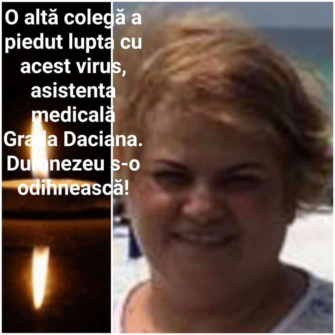 Se pare că, pe lângă COVID-19, Daciana Grada ar fi suferit și de hipertensiune arterială. Era asistentă medicală la Spitalul Județean de 15 ani.