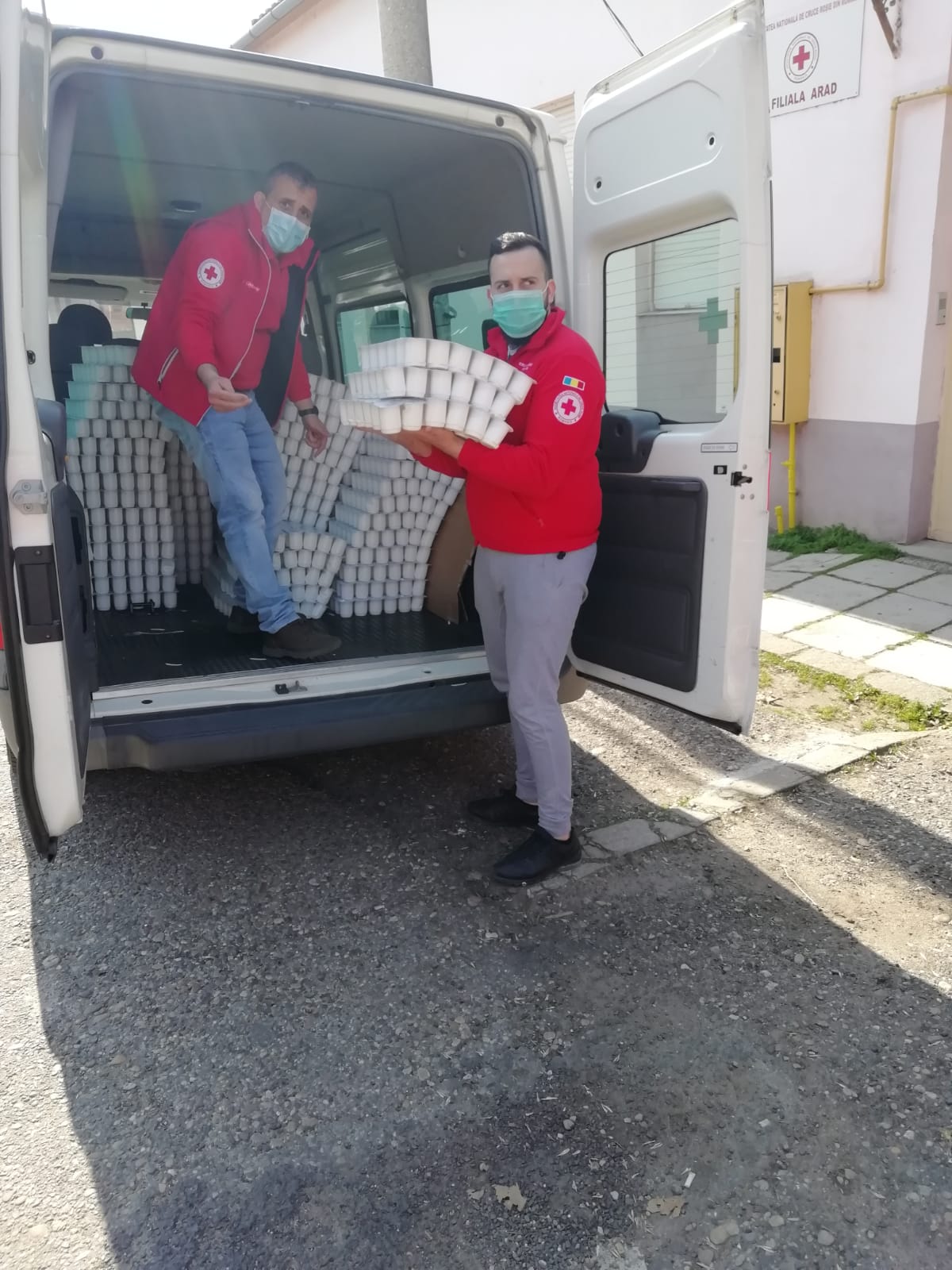 „Donaţia este destinată persoanelor care au fost afectate în această perioadă de virusul COVID-19. Au fost vizați în primul rând cei care oferă ajutor în prima linie, printre care amintim: Inspectoratul pentru Situaţii de Urgenţă (ISU) Arad, Unitatea de Primire Urgenţe (UPU) a Spitalului Clinic Judeţean de Urgenţă Arad, Serviciul de Ambulanţă. Dar ne-am îndreptat atenţia şi spre cei care în această perioadă sunt afectaţi de pandemie: Direcţia Generală de Asistenţă Socială şi Protecţia Copilului Arad, Adăpostul de Noapte din Arad, copii care sunt în diferite centre şi, totodată, alte ONG-uri din Arad. Mulţumim fabricii donatoare din Timiş, dar şi voluntarilor care au ajutat la distribuire şi, nu în ultimul rând, preşedintelui filialei, dr. Dragoş Beniamin, care a facilitat transportul și distribuirea” – spune Iudita Cuvineanu, director al Crucii Roşii Arad.
