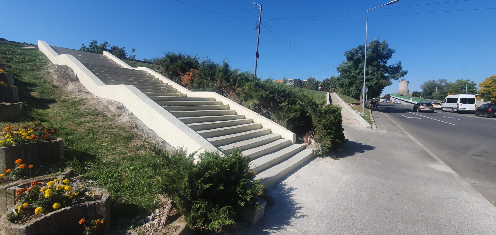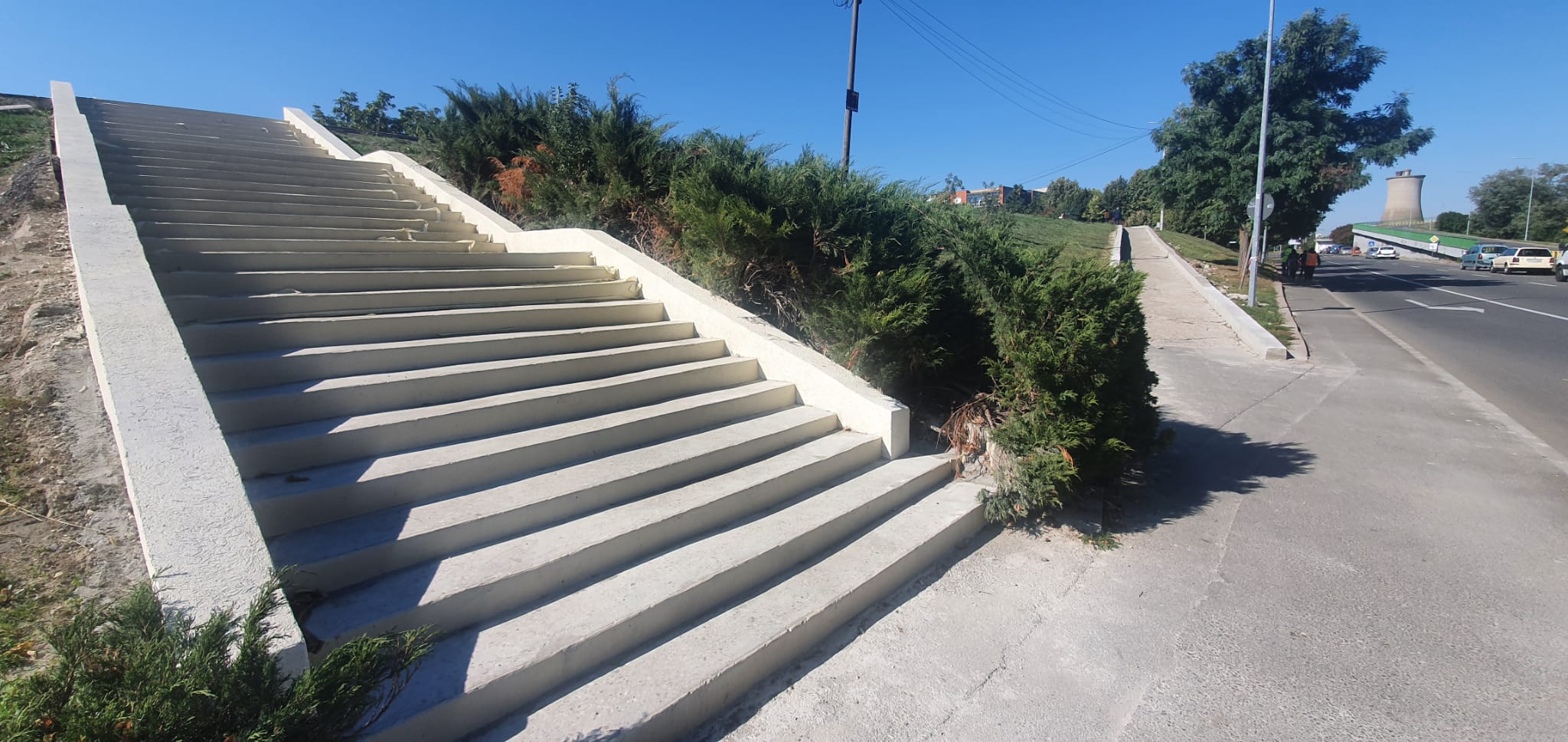 Acum o săptămână se lucra în continuare la urcarea pe mal din vecinătatea Universităţii Aurel Vlaicu, semn că urcarea pentru persoane cu handicap nu le-a ieşit nici acum, iar vechea urcare s-a ales doar cu câteva trepte mai lungi. Dar nu ritmul – acelaşi, lent – cu care se fac investiţii în oraş ne-a făcut să ne oprim din nou asupra investiţiei, ci modul în care arată treptele deja finalizate. Uitându-ne la ele, am putea jura că aceasta nu reprezintă o investiţie de secol XXI, nu pentru un municipiu, nici măcar pentru unul din România.