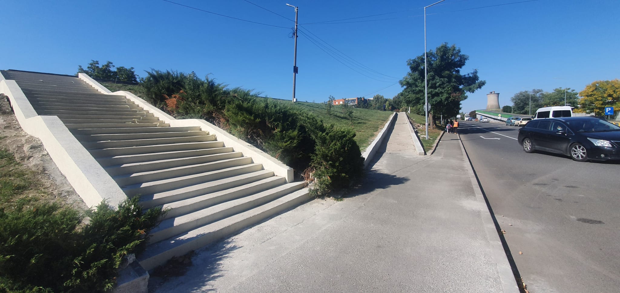 De remarcat ca rampele din zona str. Ioan Alexandru si Polivalenta, nu duc nicaieri – respectiv spre nici o trecere de pietoni. Apare astfel situatia in care o mama cu caruciorul trece pe “zebra” si apoi o ia cu caruciorul prin iarba pentru a ajunge la rampa (deoarece intre rampa si scari sunt masini parcate).