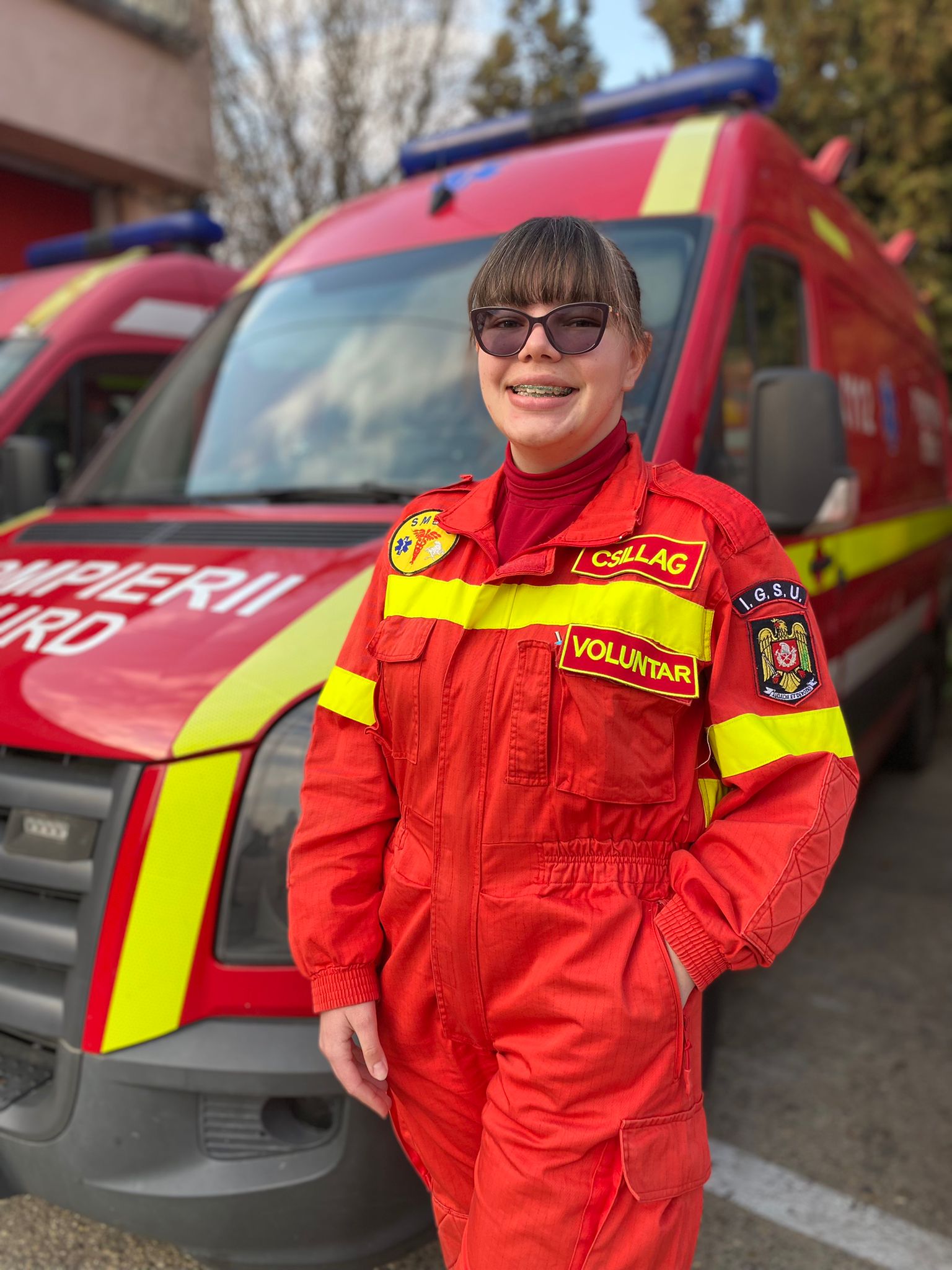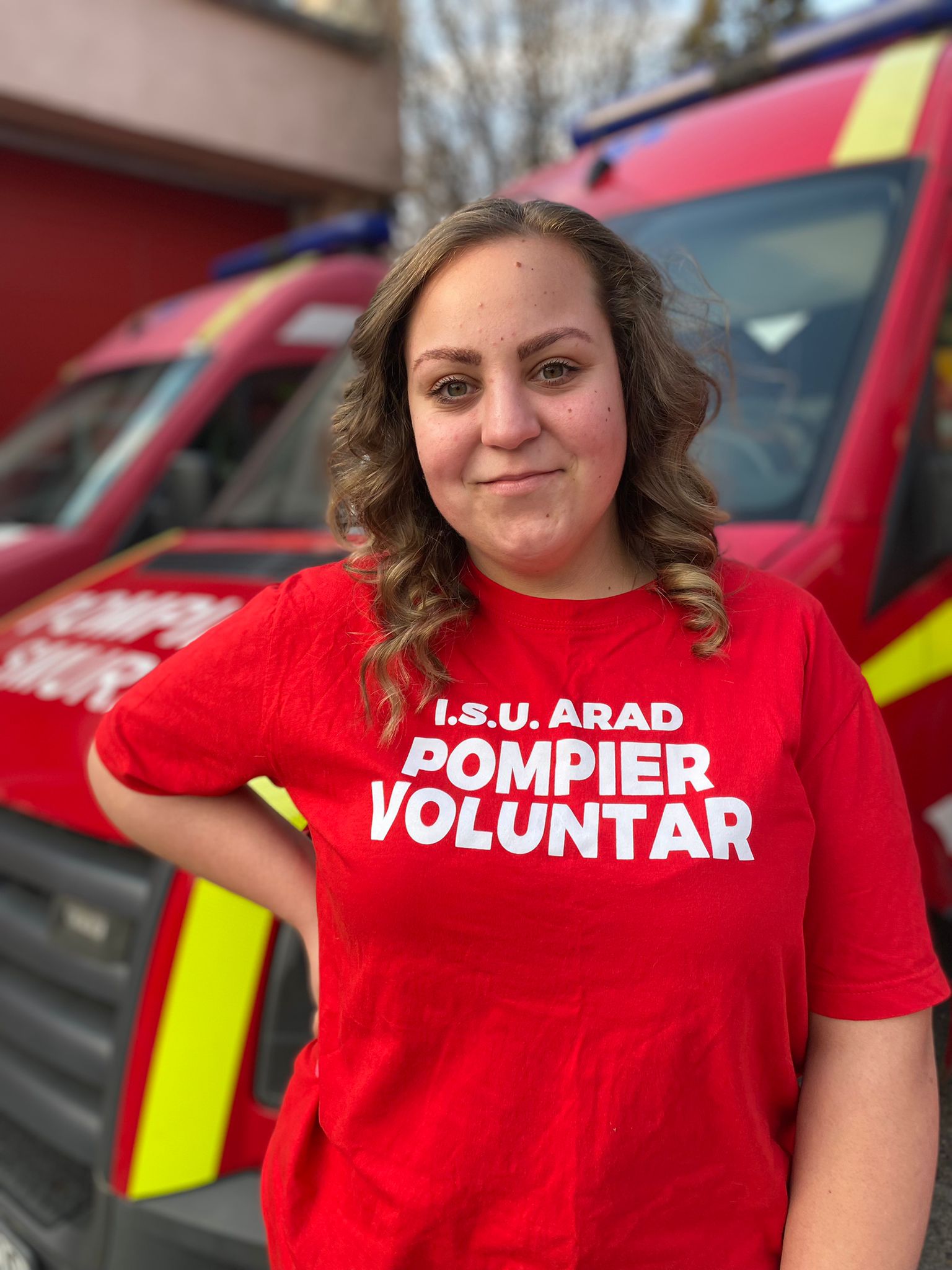 Erika CsillagÎn cele șase luni de când este voluntară ISU Arad, Erika a participat la mai bine de 20 de intervenții. O zi perfectă pentru ea este dată de lipsa sunetelor de sirenă. Studentă în anul I la Universitatea Aurel Vlaicu Arad, speră ca de la uniforma de voluntar să treacă la cea de subofițer. Noi îi dormim mult succes în tot ceea ce și-a propus.