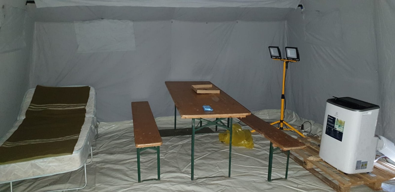 După fiecare intervenție la care se intră în contact cu persoane suspecte sau confirmate cu virusul COVID-19, personalul și tehnica de intervenție se decontaminează. Misiunea de decontaminare se efectuează în poligonul ISU Arad de căre echipajul CBRN. Decontaminarea este un proces complex care durează aproximativ 60 de minute pentru fiecare echipaj. Reprezentanții ISU Arad explică felul în care se efectuează: „În prima fază se decontaminează personalul care a participat la intervenție. Decontaminarea începe prin nebulizarea substanțelor asupra combinezonului înainte ca acesta să fie dezbrăcat, predat și distrus de către o firmă specializată. Cizmele, ochelarii, casca, vizeta se decontaminează și se refolosesc. După decontaminare personalul poate trece la repaus, până la decontaminarea autospecialei, în cortul special amenajat. Decontaminarea autospecialei se face ulterior prin nebulizarea de substanță în interior. Timp de 60 de minute substanța de decontaminarea este lăsată să acționeze”. Din 19 martie 2020, când s-a executat prima operațiune, echipajul CBRN a decontaminat 167 de pompieri, medici, asistenți, polițiști și jandarmi și 68 de mijloace tehnice.