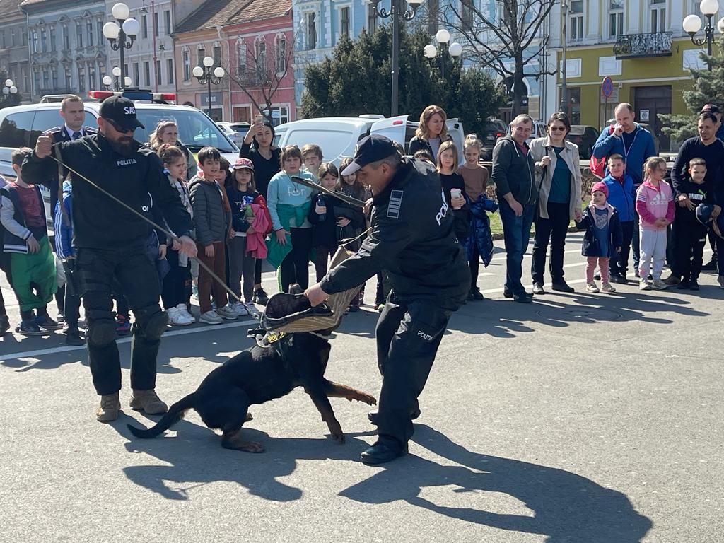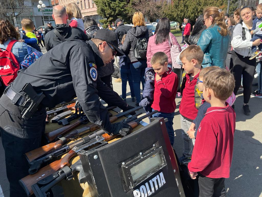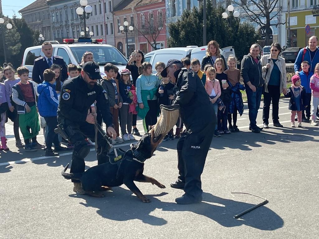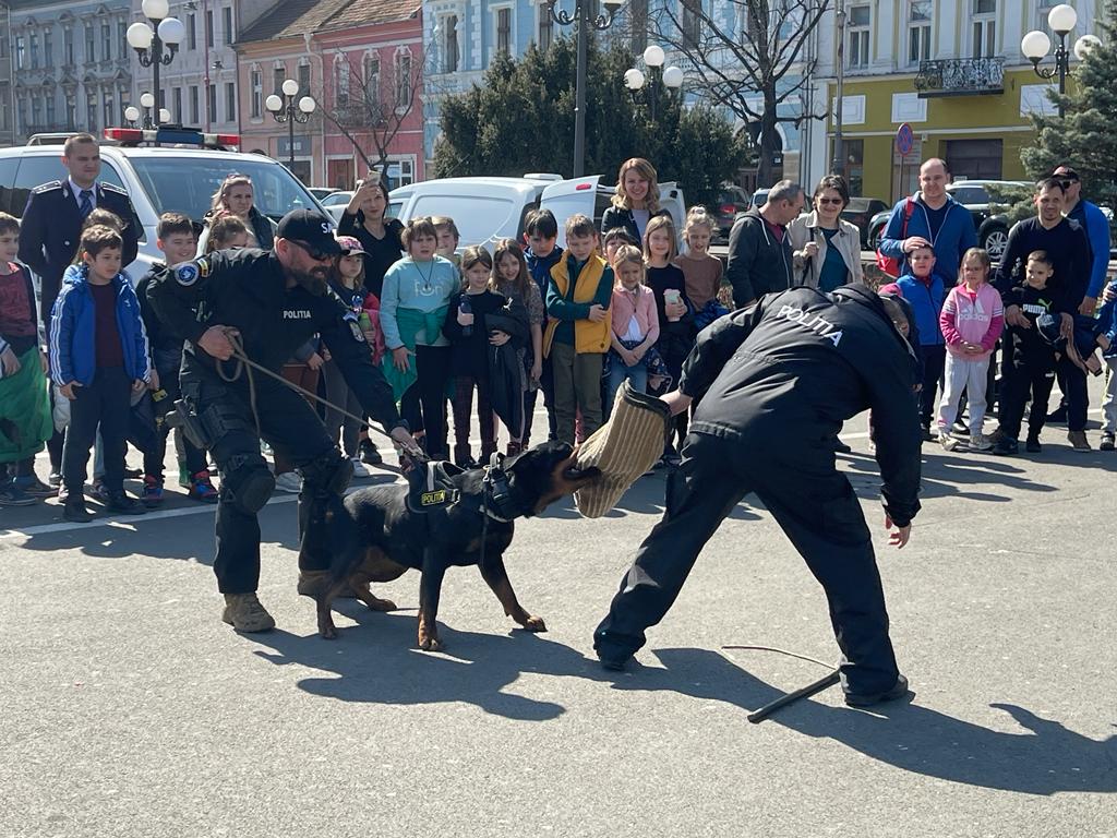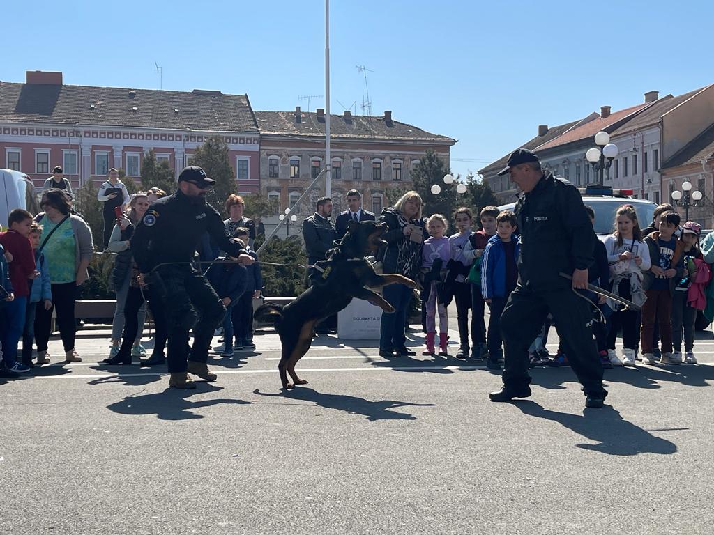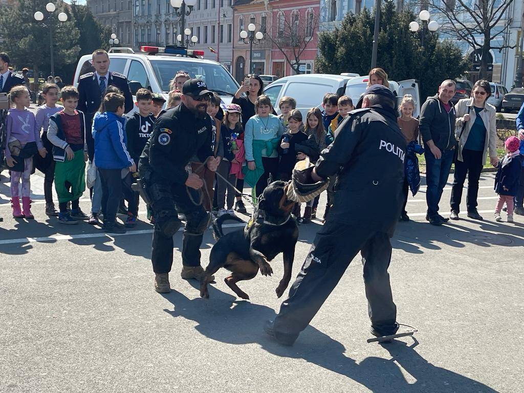 ARAD. Copiii i-au putut admira pe mascați, dar și pe polițiștii de la celelalte structuri din cadrul Inspectoratul de Poliție Județean Arad: Rutieră, Ordine Publică, Criminalistică, dar și pe cei de la Proximitate, Prevenire și Siguranță Școlară, dar și pe câinii care îi ajută pe polițiști în diferitele acțiuni.Cei mici au fost încântați în mod special de demonstrațiile cu câini, dar și de autospecialele Poliției. Și asta pentru că au avut voie să dea drumul la sirene.