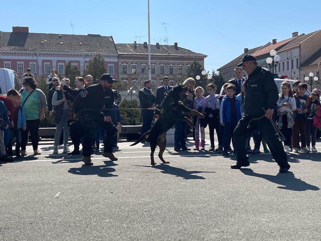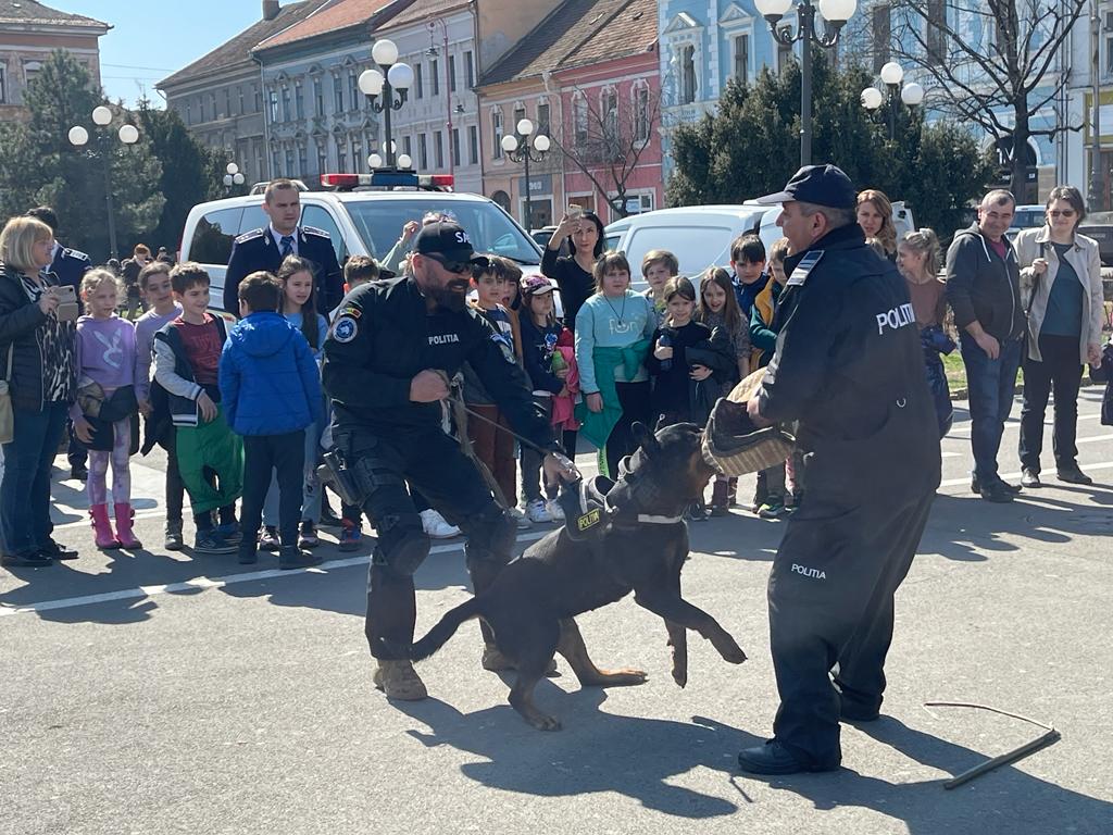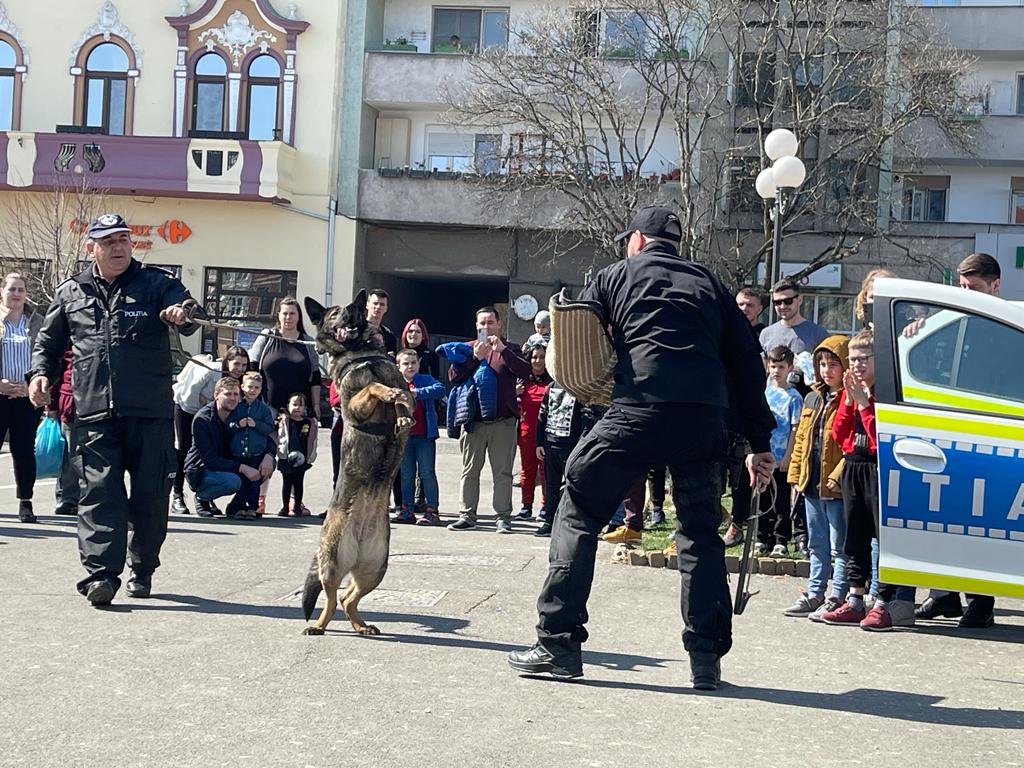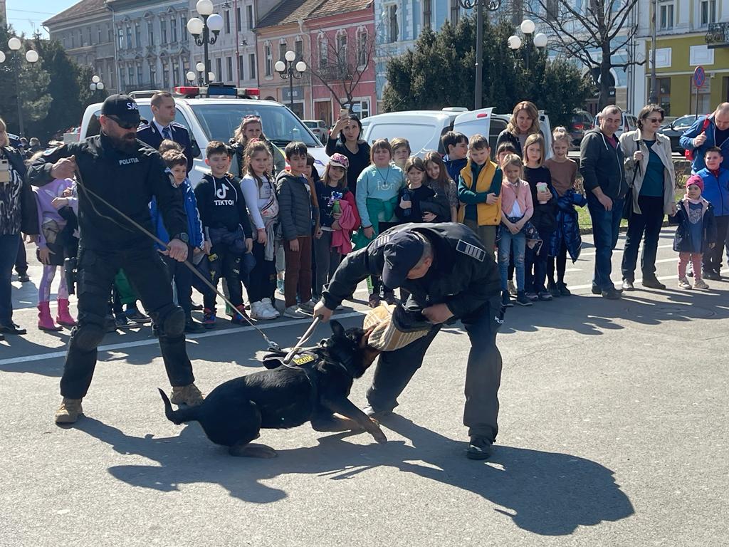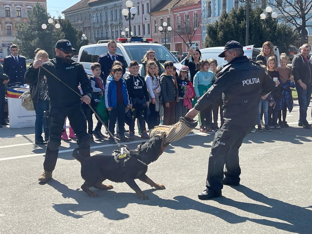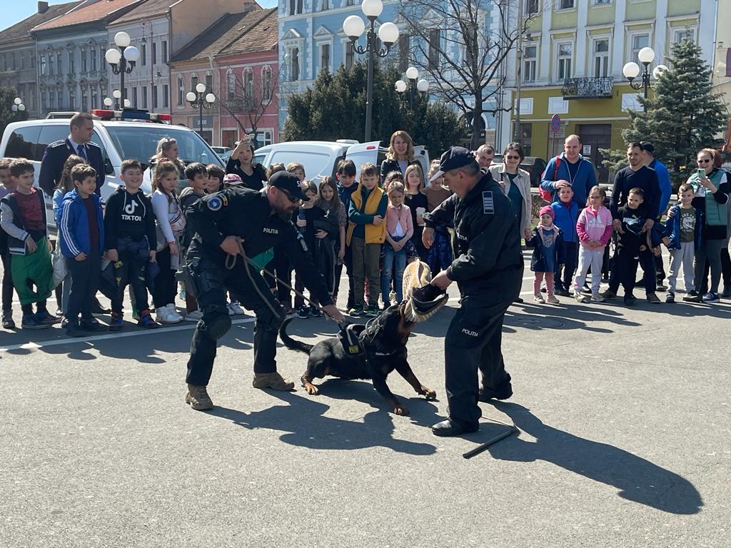 ARAD. Copiii i-au putut admira pe mascați, dar și pe polițiștii de la celelalte structuri din cadrul Inspectoratul de Poliție Județean Arad: Rutieră, Ordine Publică, Criminalistică, dar și pe cei de la Proximitate, Prevenire și Siguranță Școlară, dar și pe câinii care îi ajută pe polițiști în diferitele acțiuni.Cei mici au fost încântați în mod special de demonstrațiile cu câini, dar și de autospecialele Poliției. Și asta pentru că au avut voie să dea drumul la sirene.