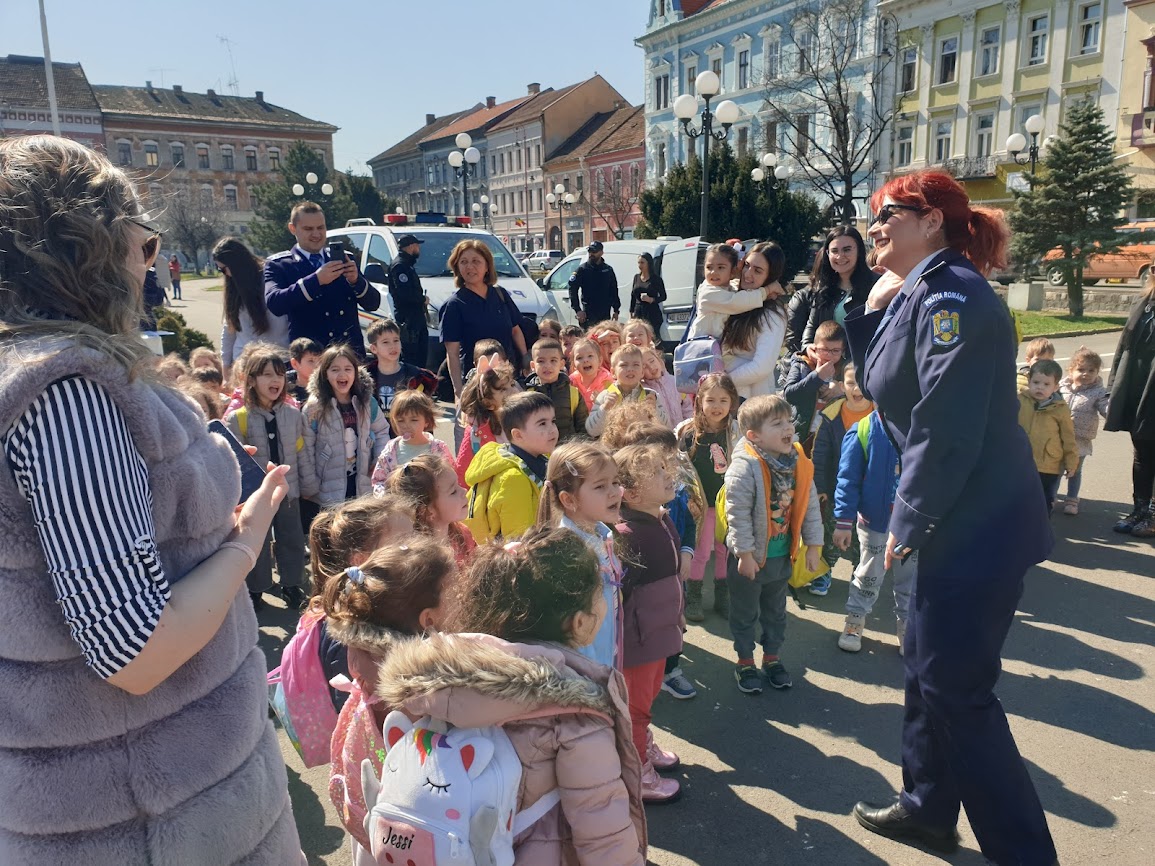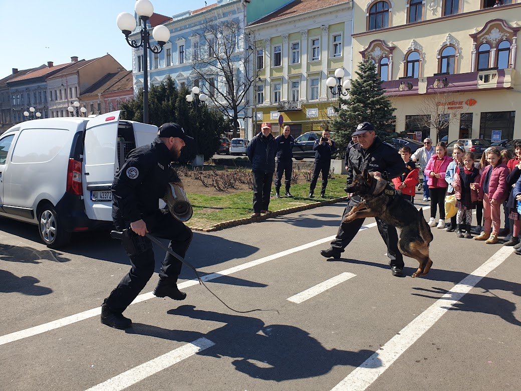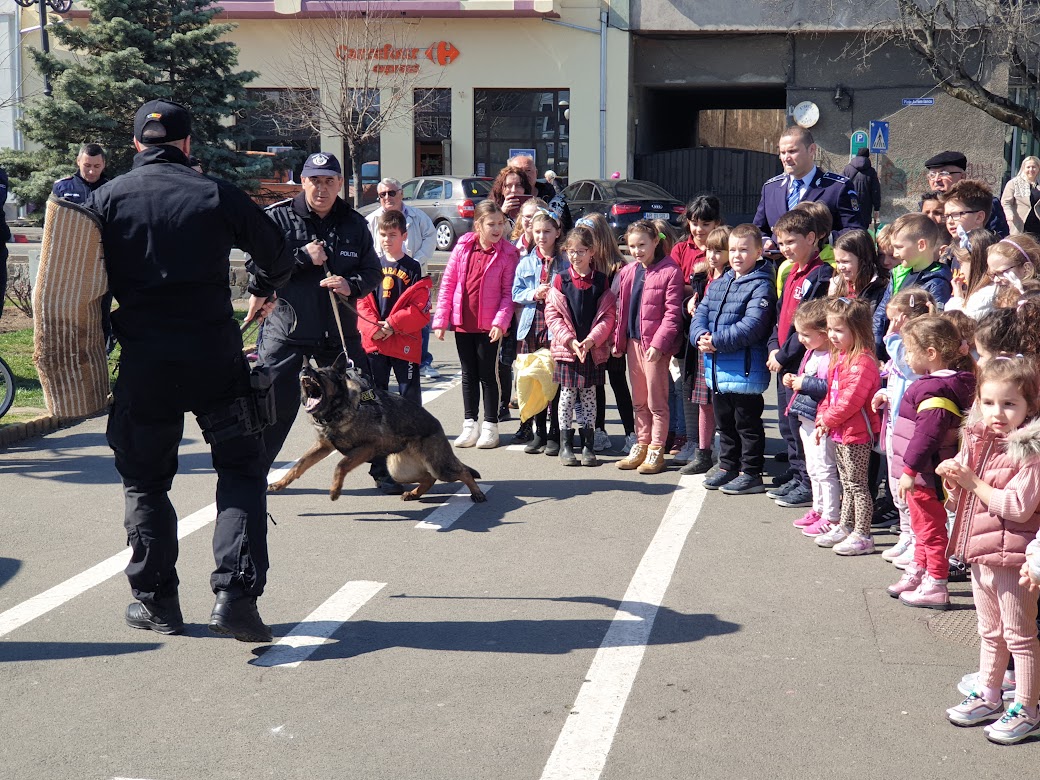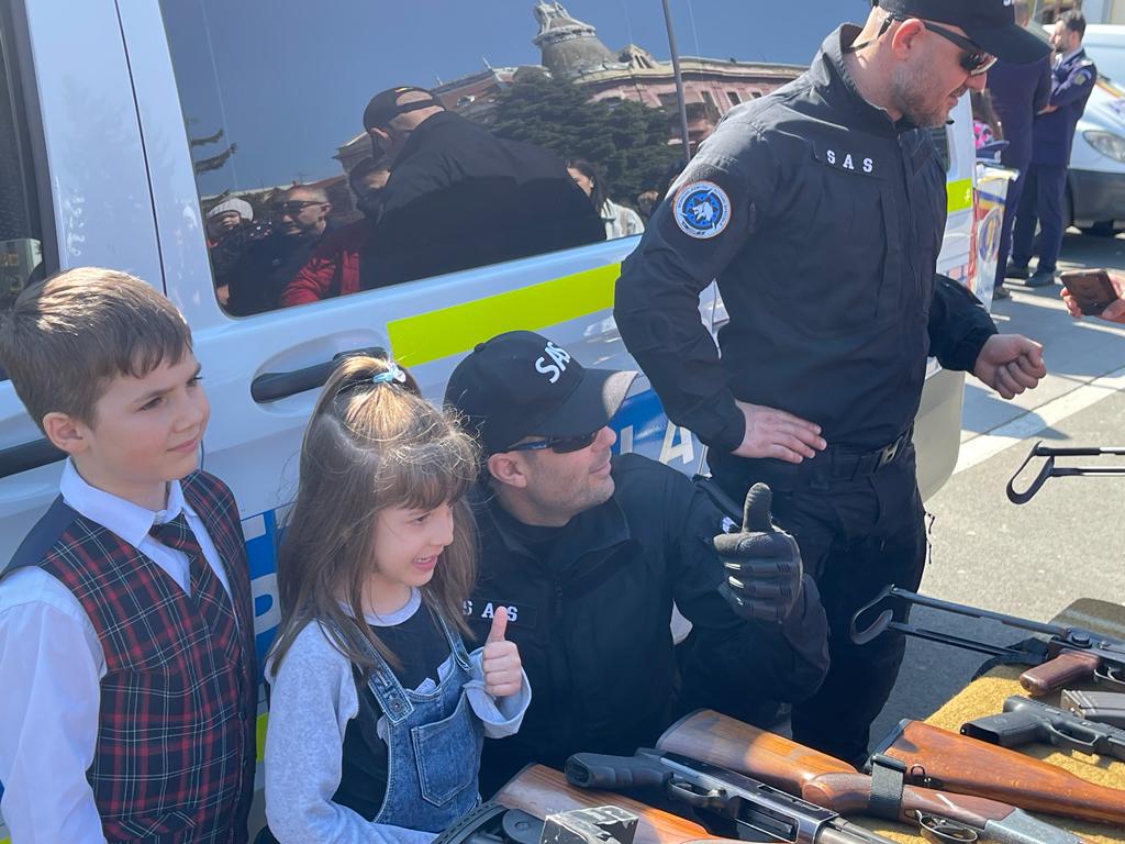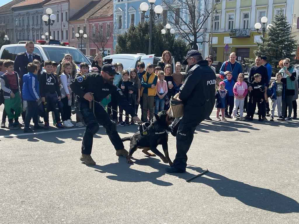 ARAD. Copiii i-au putut admira pe mascați, dar și pe polițiștii de la celelalte structuri din cadrul Inspectoratul de Poliție Județean Arad: Rutieră, Ordine Publică, Criminalistică, dar și pe cei de la Proximitate, Prevenire și Siguranță Școlară, dar și pe câinii care îi ajută pe polițiști în diferitele acțiuni.Cei mici au fost încântați în mod special de demonstrațiile cu câini, dar și de autospecialele Poliției. Și asta pentru că au avut voie să dea drumul la sirene.