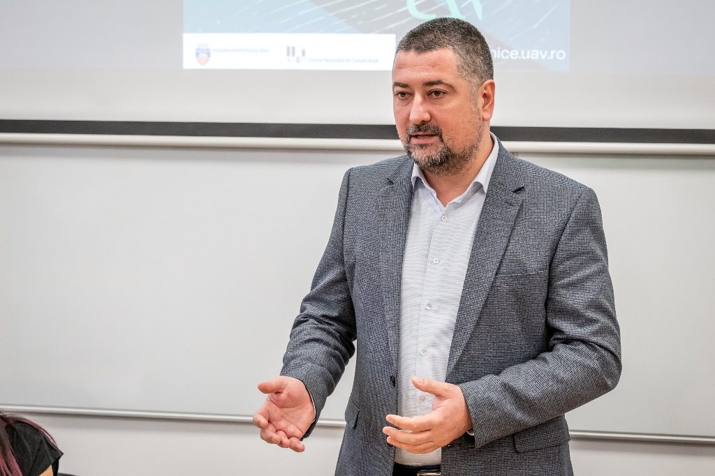 Săptămâna aceasta, antreprenorul Călin Muscă s-a întâlnit cu studenții Facultății de Științe Economice din cadrul UAV, în cadrul unui eveniment dedicat dialogului dintre mediul universitar și cel de afaceri. Proiectul de tradiție al UAV – Stimularea creativității tinerilor arădeni în domeniul economic și social prin proiecte și simulări antreprenoriale – aflat la cea de-a IX-a ediție, aduce în fața studenților oameni de afaceri a căror experiență și poveste de succes inspiră și motivează.