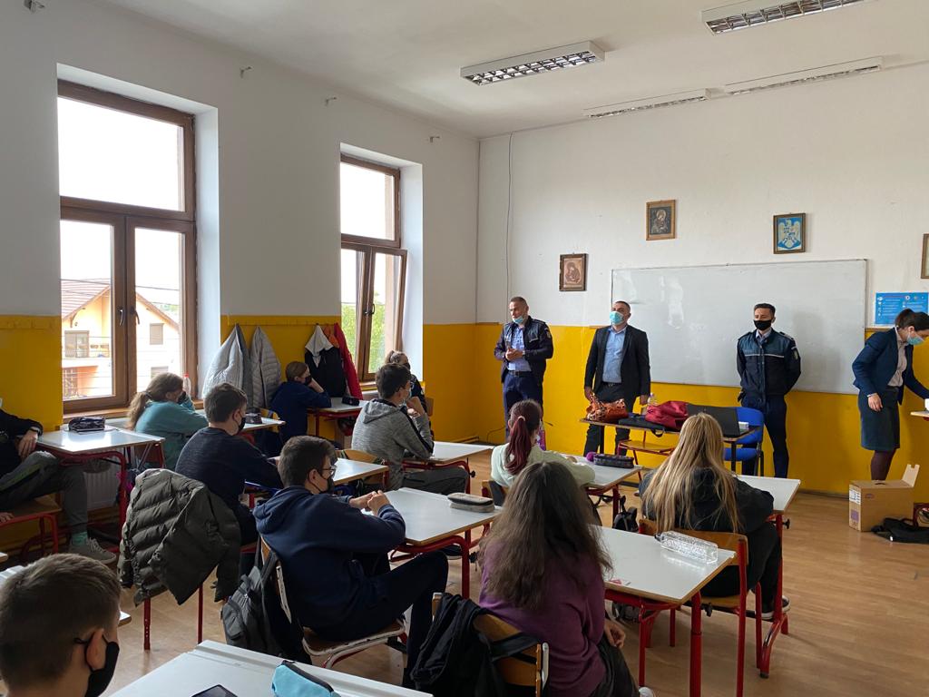 PECICA. Polițiștii au prezentat elevilor urmările ce pot surveni în cazul unor abateri disciplinare, în cazul implicării în scandaluri, loviri sau alte violențe sau alte fapte prevăzute de legea penală.