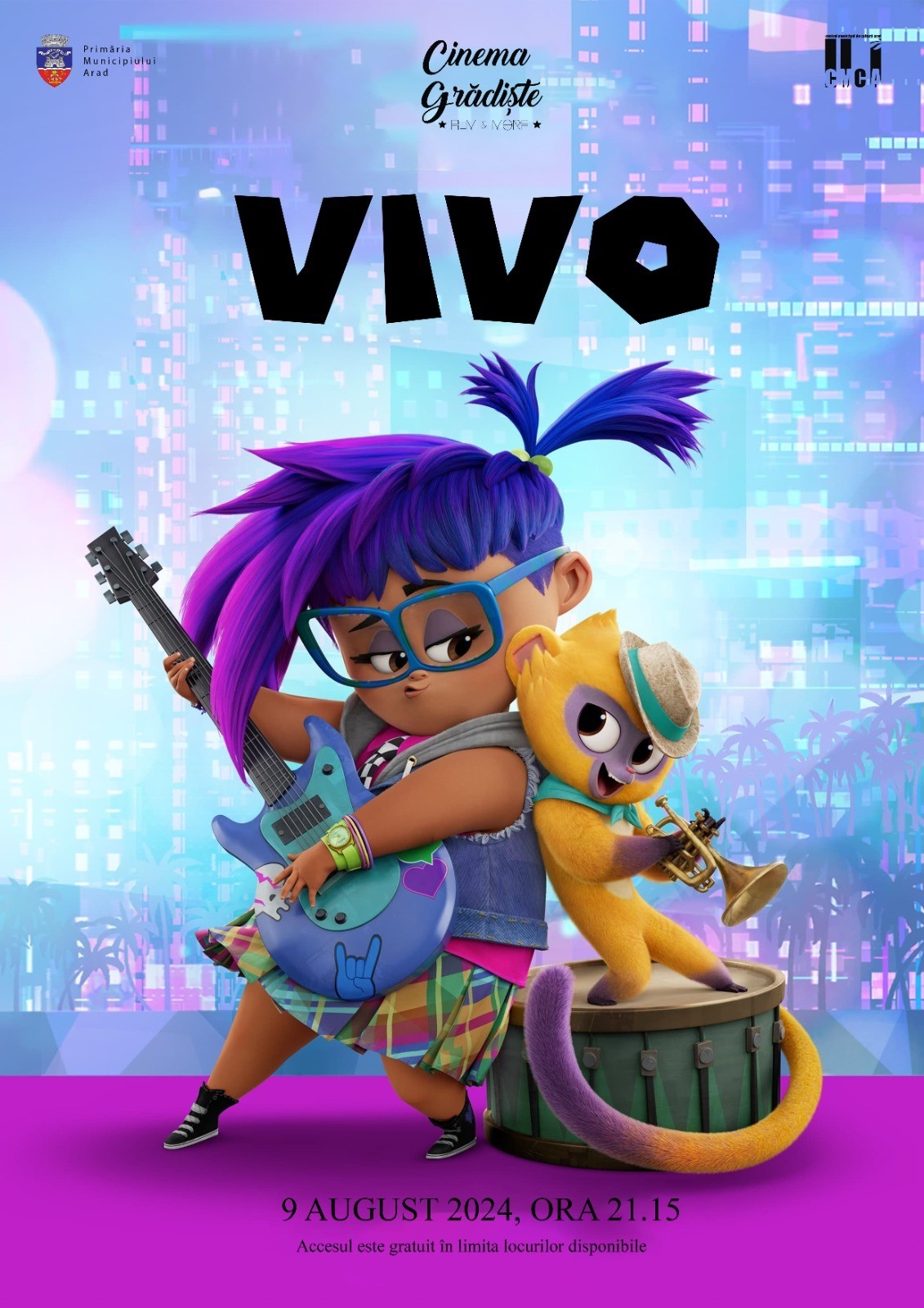 Povestea lui „Vivo”, un kinkaju care trăiește în pădurile tropicale, va putea fi văzută în grădina de vară de la Cinematograful din Grădiște. „Proiecția va avea loc vineri, 9 august 2024, de la ora 21.15 și va fi precedată – începând de la ora 20.45 – de jocuri muzicale interactive cu Raul Lucaci de la Teatrul de animație Piticot. Accesul la eveniment va fi gratuit, în limita locurilor disponibile” – transmite Centrul Municipal de Cultură Arad, organiztaor al evenimentului.