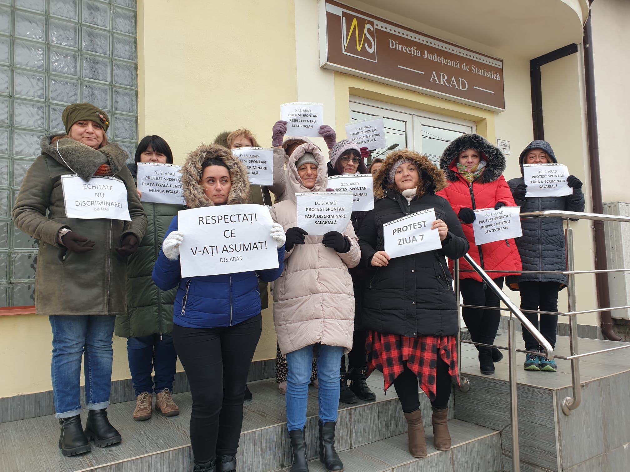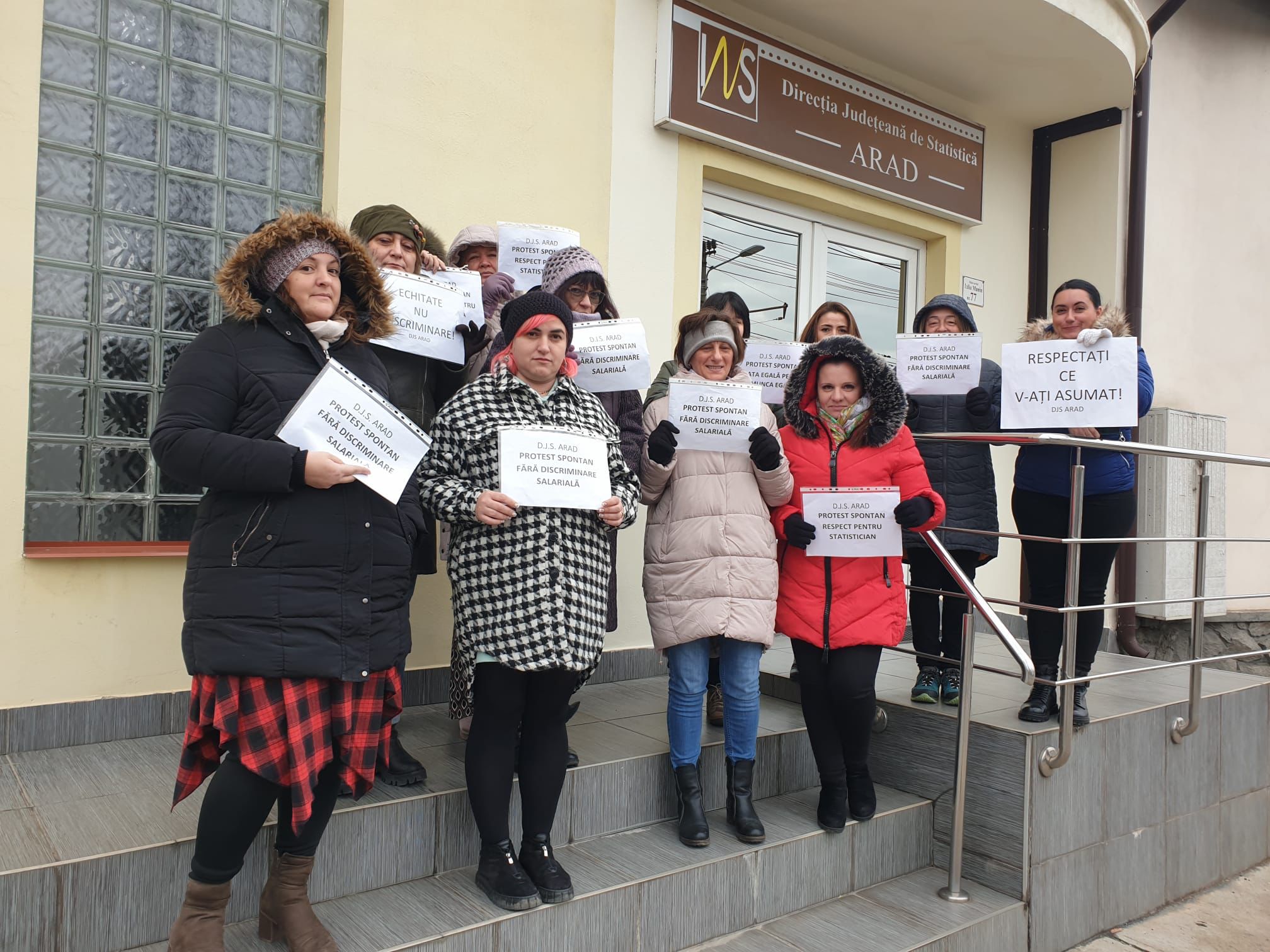 Miercuri, începând cu ora 11:00, angajații Direcției Județene de Statistică Arad vor protesta din nou, timp de o oră, începând cu ora 11:00, în fața sediului instituției.