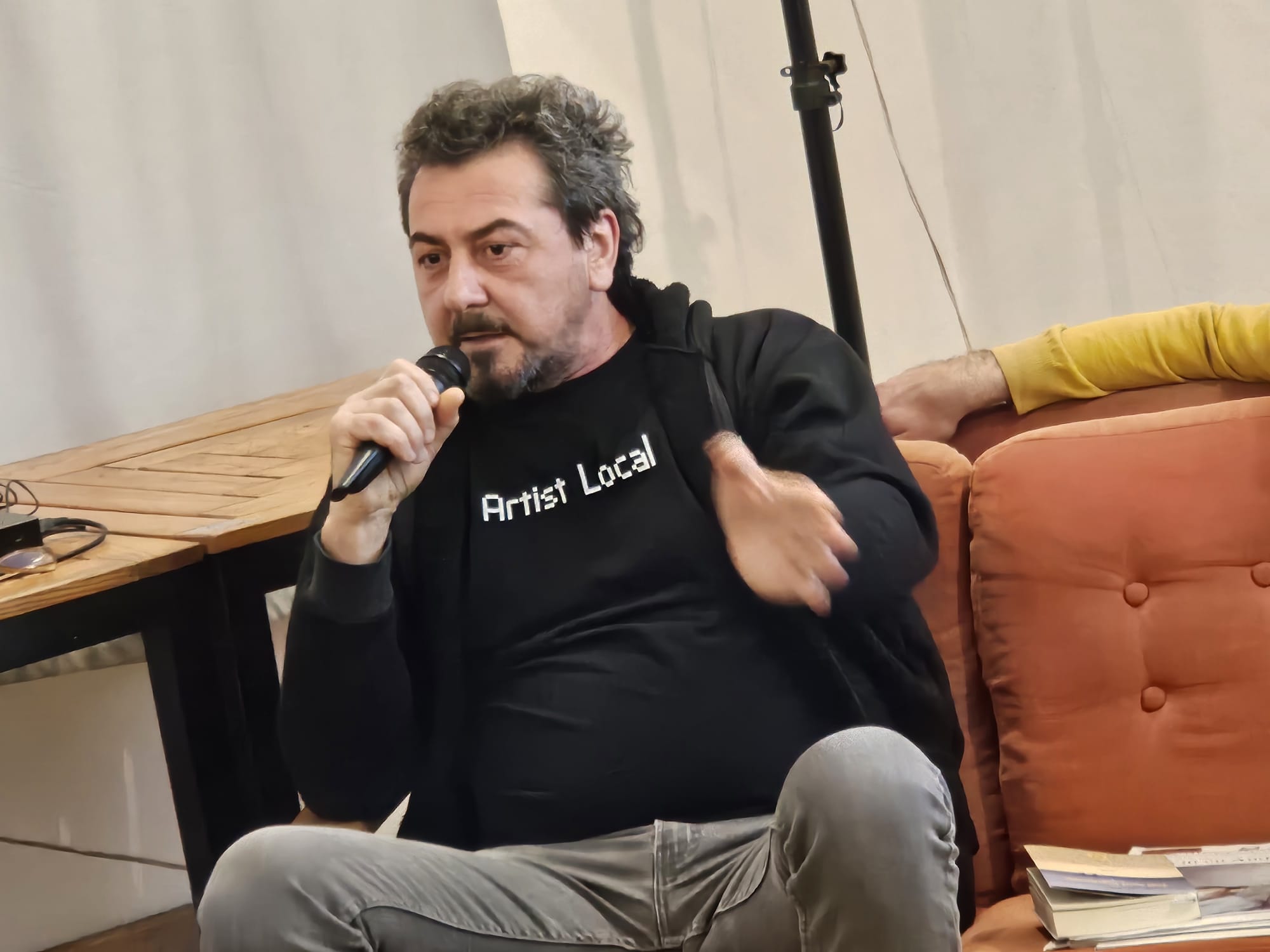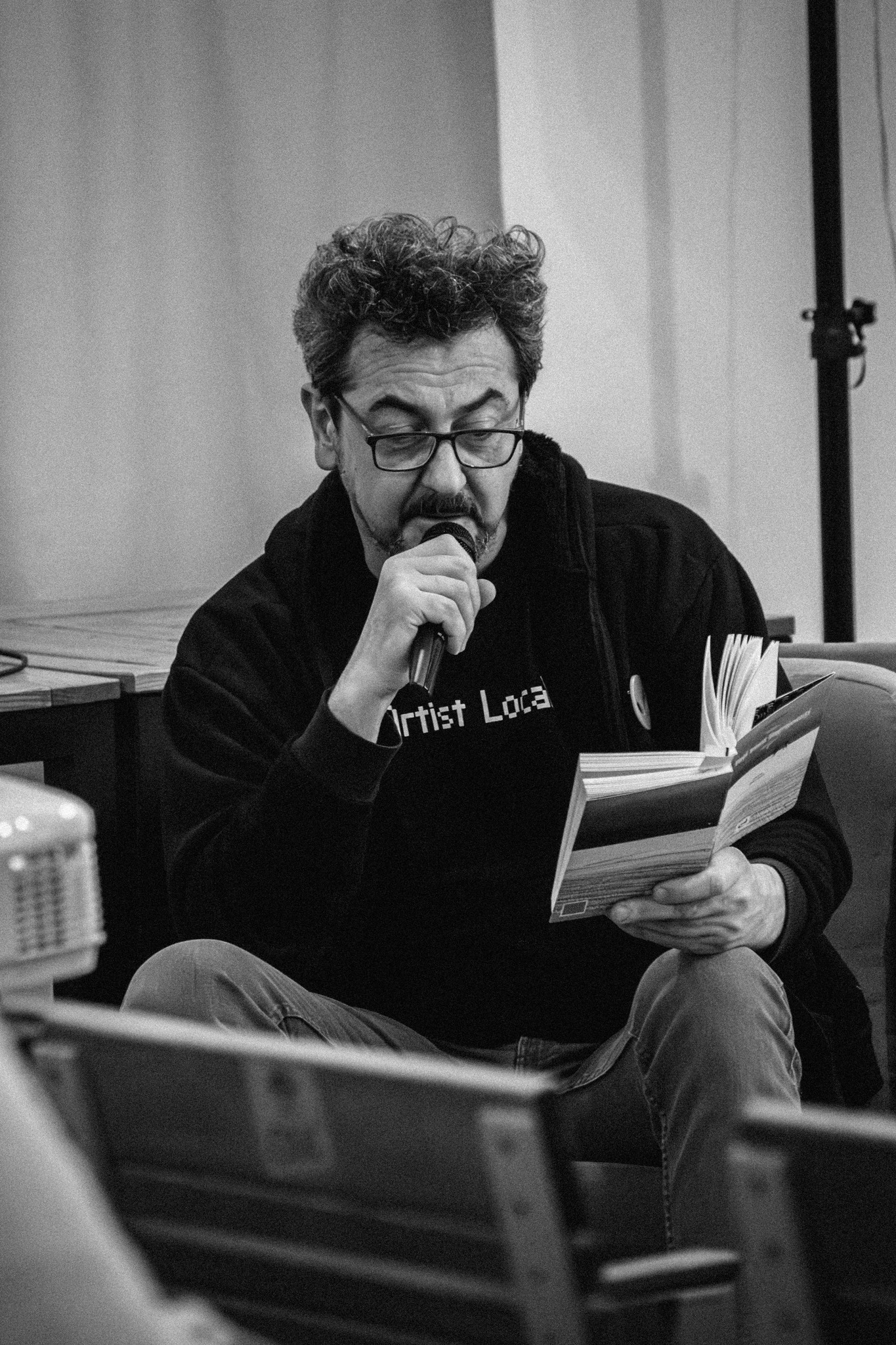 Programul serii a avut trei părți și a debutat cu momentul de lectură. Vasile Leac a dat citire câtorva poeme din recenta sa antologie, “Toți sunt îngrijorați” (Dezarticulat, 2023), lectură presărată cu mărturisiri personale și întreruptă în când în când de dialogul pe alocuri spumos cu amfitrionul Cătălin Lazurca.
