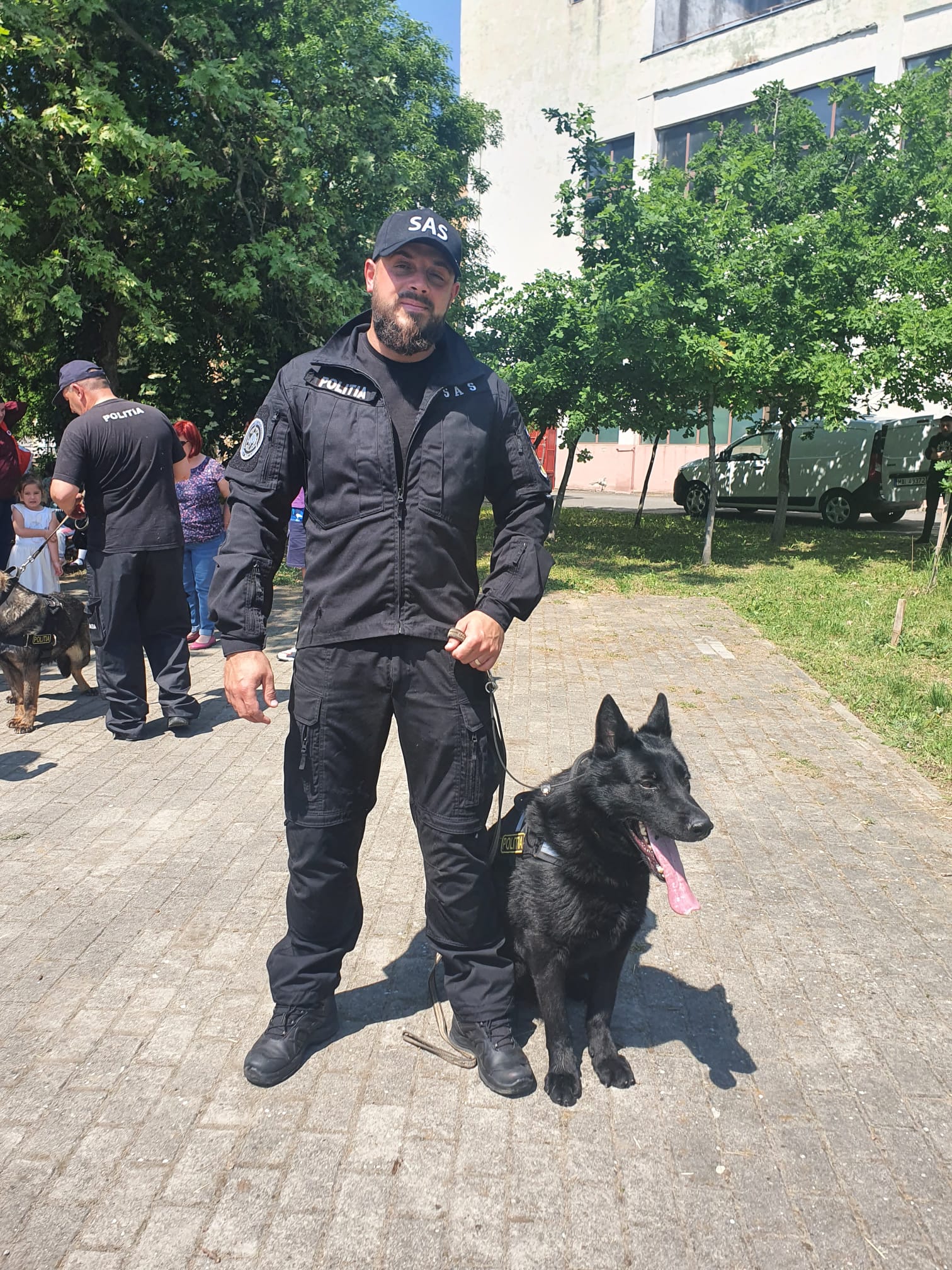 Preșcolarilor le-au fost prezentați Ares și Veta, doi ciobănești germani, în vârstă de 4, respectiv 1 an, care le sunt partenerii de nădejde în activităţile desfășurate. Totodată, copilașii au putut urmări mai multe exerciții demonstrative, ocazie cu care au observat ce se întâmplă când conductorul este atacat, când „cel rău” fuge de sub paza polițiștilor sau când câinele primește comanda „prinde”.