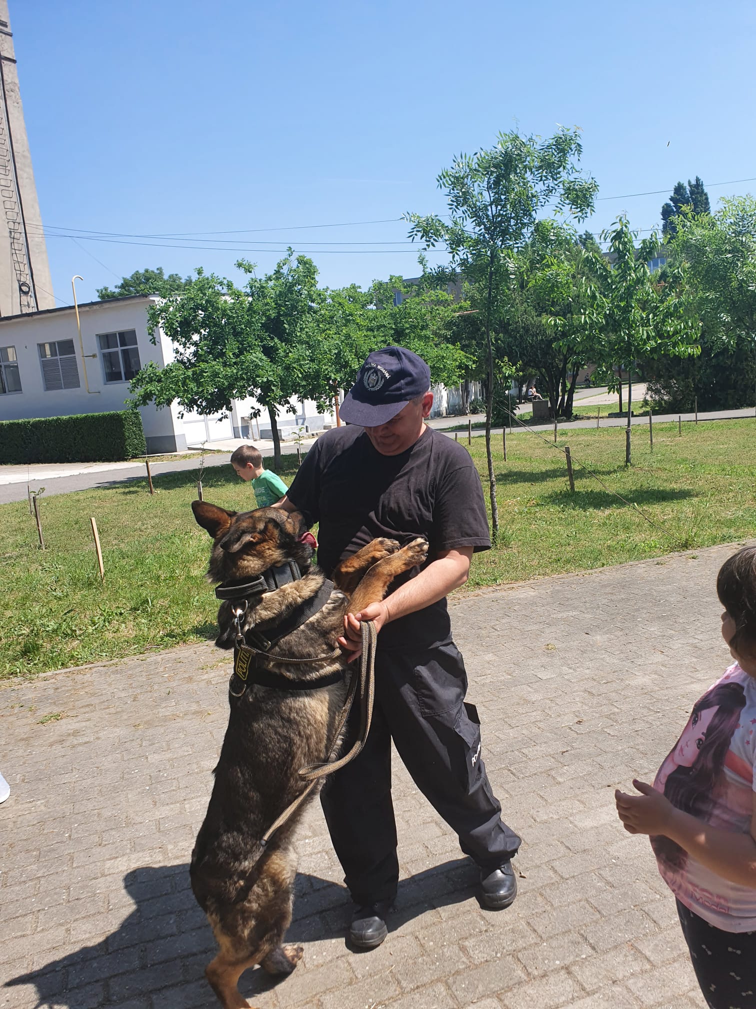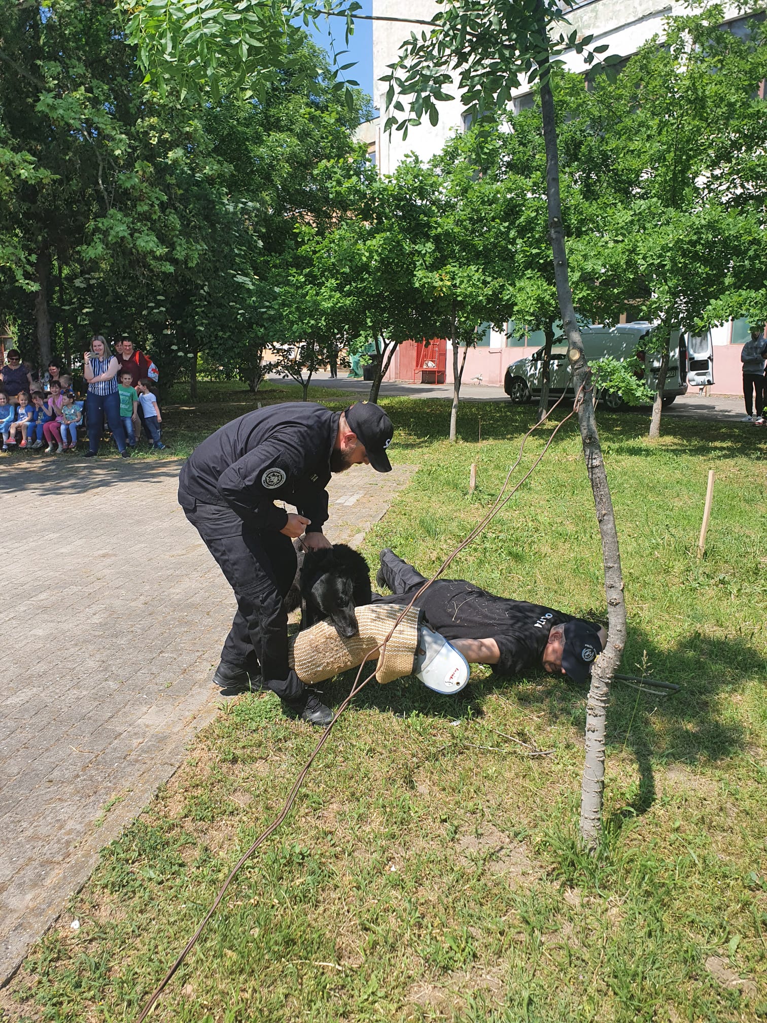 Preșcolarilor le-au fost prezentați Ares și Veta, doi ciobănești germani, în vârstă de 4, respectiv 1 an, care le sunt partenerii de nădejde în activităţile desfășurate. Totodată, copilașii au putut urmări mai multe exerciții demonstrative, ocazie cu care au observat ce se întâmplă când conductorul este atacat, când „cel rău” fuge de sub paza polițiștilor sau când câinele primește comanda „prinde”.