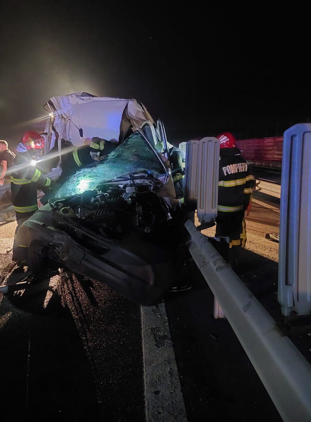 Pompierii au asigurat zona pentru prevenirea izbucnirii unui incendiu, circulația fiind temporar restricționată pe banda de urgență în timpul intervenției.