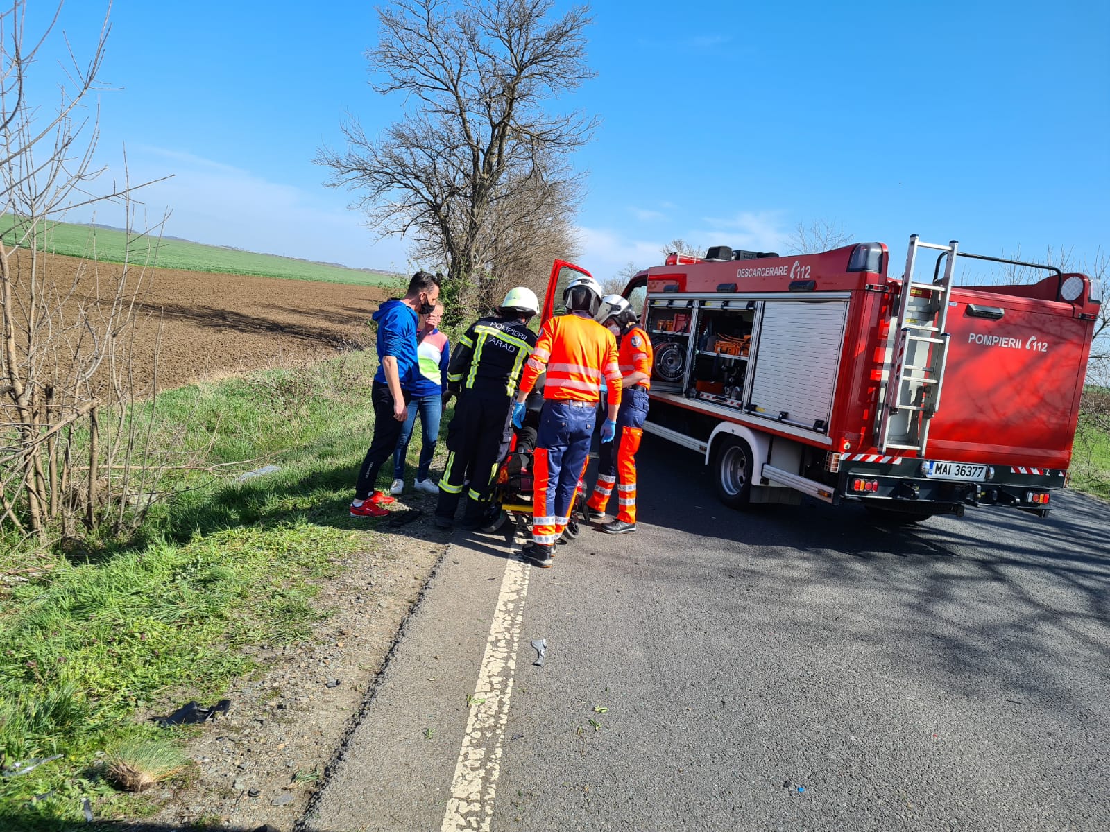 La fața locului au fost trimise o autospecială de descarcerare și o alta de stingere, 6 subofițeri – de la Detașamentul de Pompieri Arad -, un echipaj medical din cadrul Serviciului de Ambulanță Județean Arad și elicopterul SMURD.
