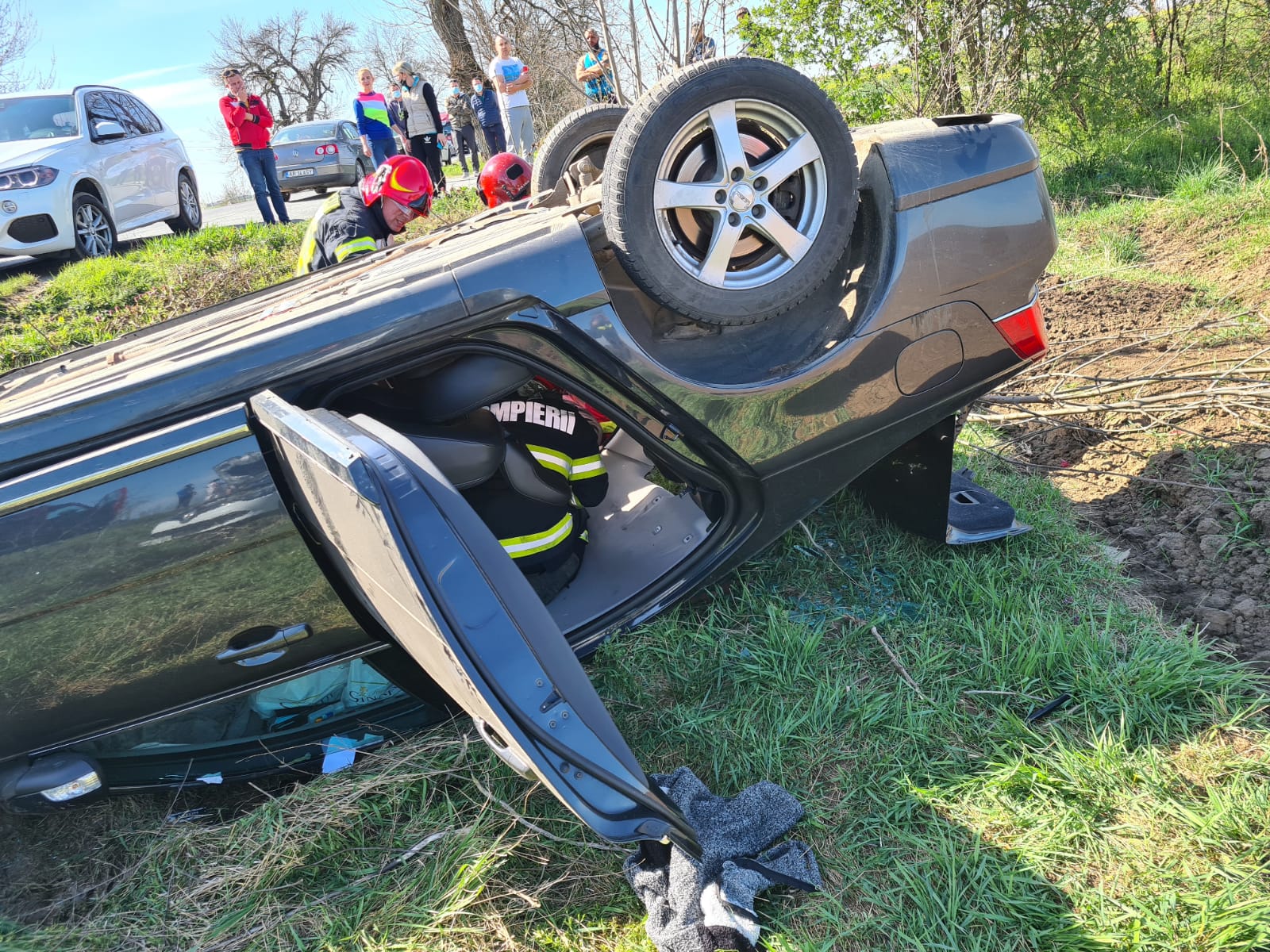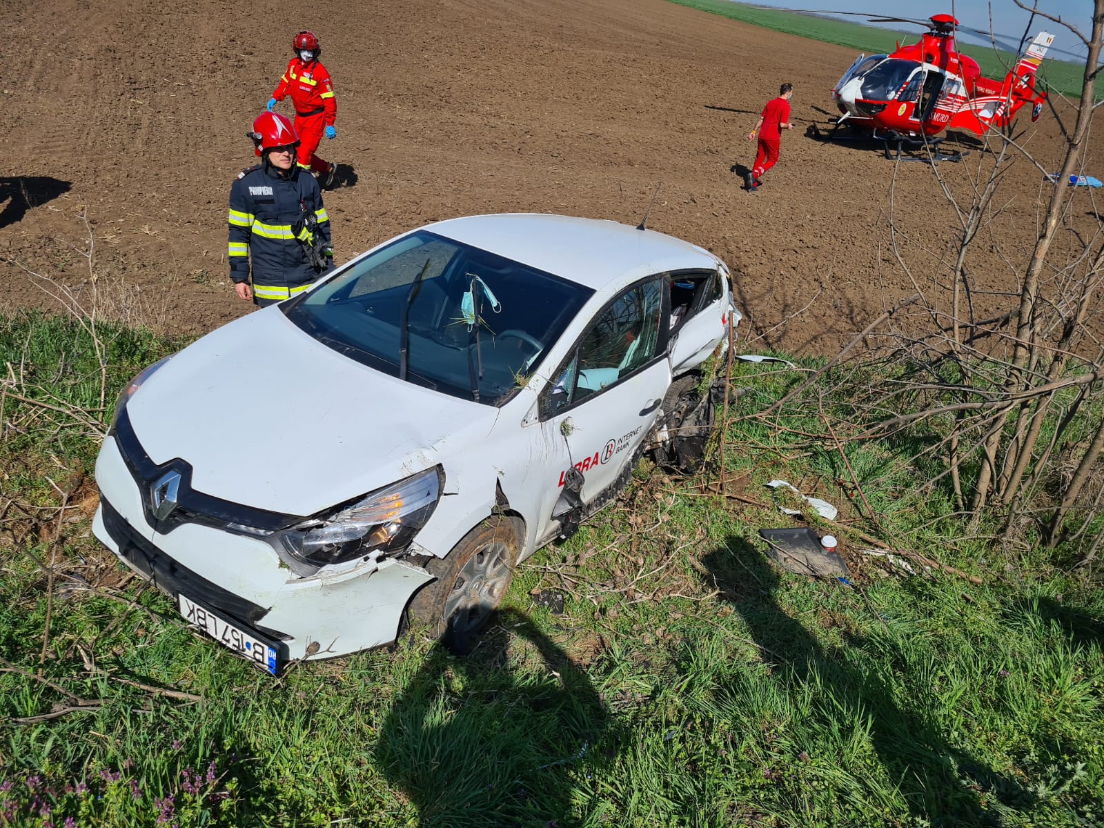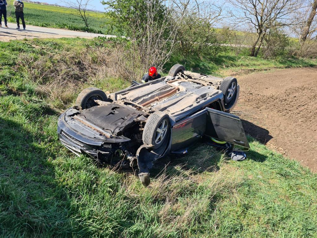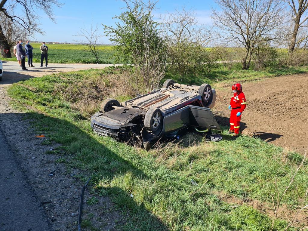 UPDATE ora 11.21: Echipajul de descarcerare a extras victima rămasă blocată în autoturism. Aceasta a fost predată echipajului SMURD de pe elicopter.