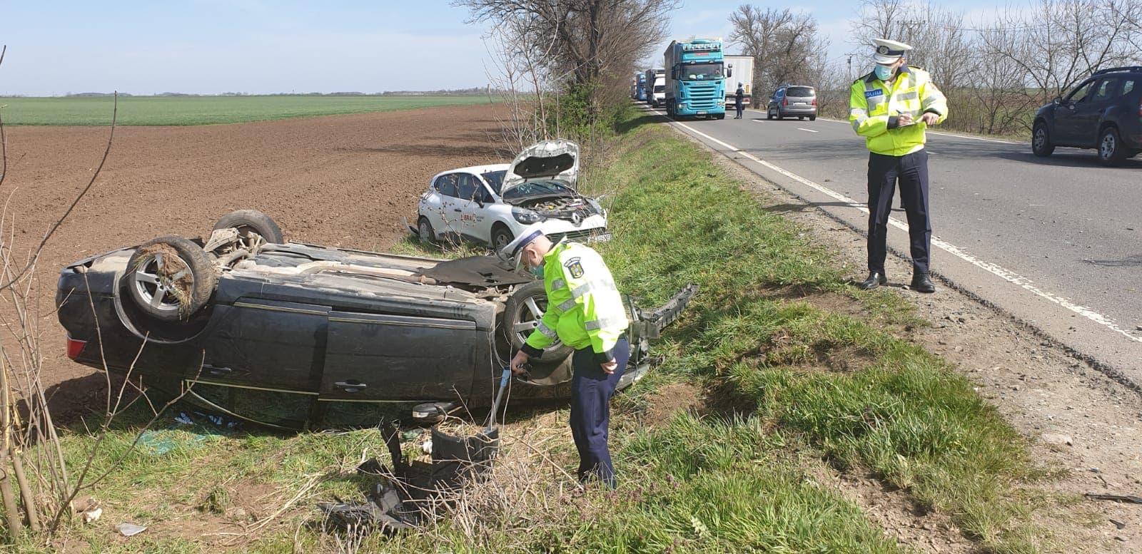 Polițiștii din cadrul Serviciul Rutier sunt la fața locului în vederea efectuării cercetării.