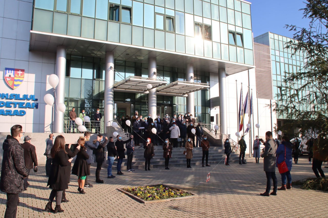 Arad. În cadrul evenimentelor care marchează aniversarea Revoluției, în holul Consiliului Județean Arad, în fața drapelului României, au fost aprinse 24 de candele, în memoria celor 24 de eroi arădeni ai Revoluției. De asemenea, a fost intonat imnul României și au fost citite numele eroilor arădeni, în cadrul unei ceremonii transmise în direct pe rețelele de socializare. Ca un simbol al purității jertfei eroilor, au fost ridicate spre cer 24 de baloane albe.