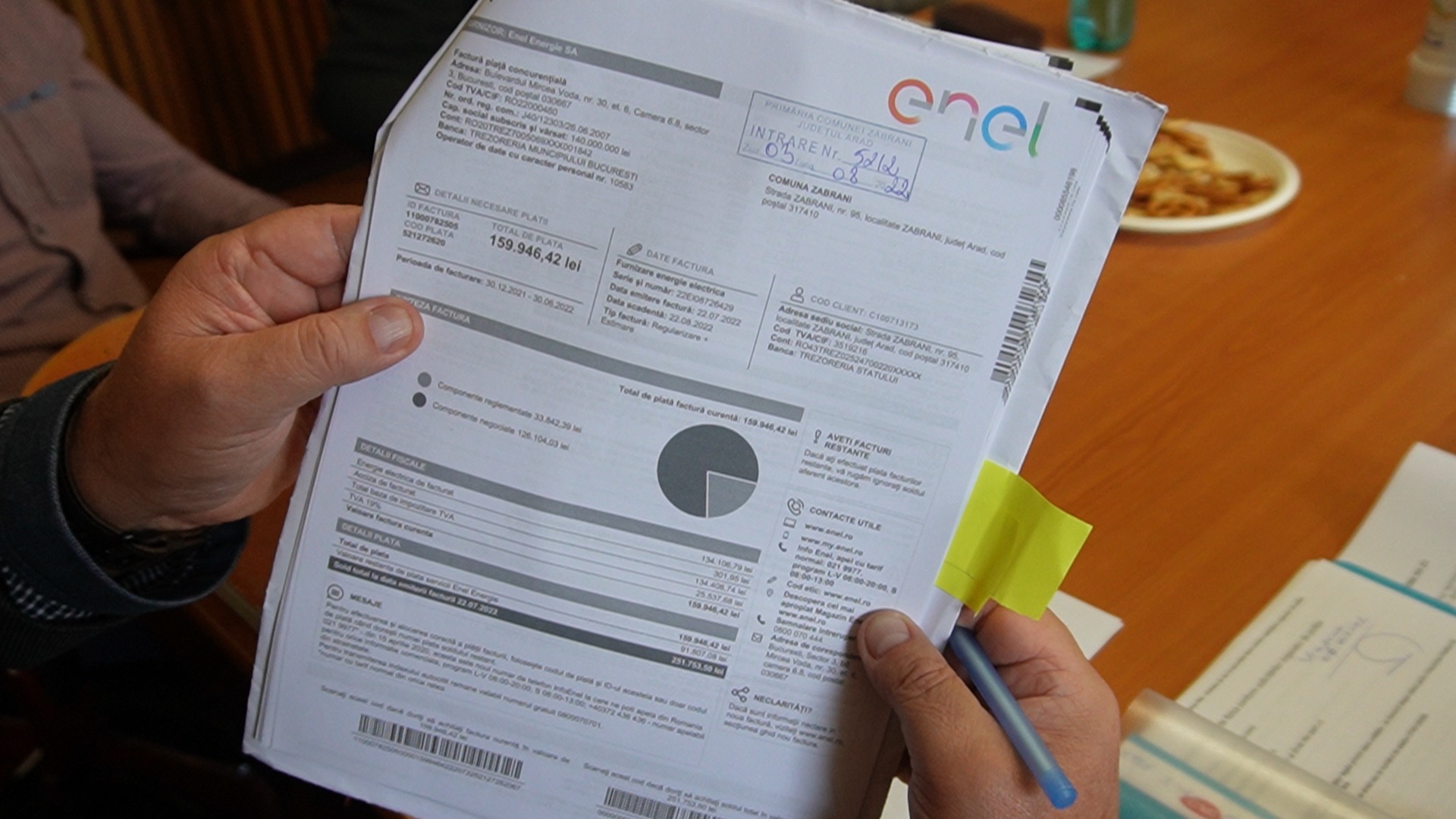 Ulterior, primarul din Zăbrani pune toate cărţile pe masă şi explică modul în care deja vestita regularizare a Enel a dat peste cap bugetul comunei: „În ultima perioadă, pentru cei mai mulți dintre noi, facturile pentru energia electrică au devenit surprinzător de mari. La niveul comunei, doar factura pentru iluminatul stradal înseamnă peste 10.000 de lei pe lună, iar consumul este, în medie, de 9.000 de KW/lună. Regularizarea pentru ultimele 6 luni înseamnă 150.000 de lei”.