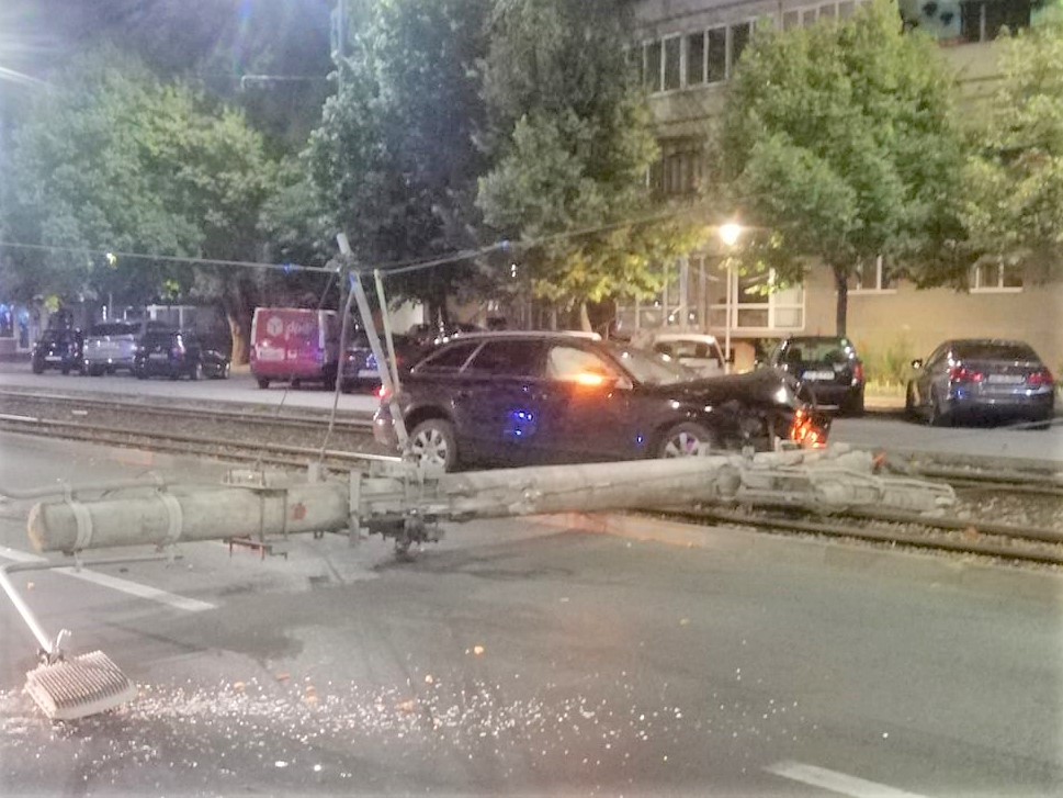 Un autoturism a pus la pământ un stâlp de susținere a rețelei de contact de pe Calea Aurel Vlaicu, între Piața Gării și Piața Caius Iacob. S-a întâmplat luni dimineață, iar acest lucru a dus la oprirea circulației tramvaielor pe tronsonul Podgoria-Piața UTA.