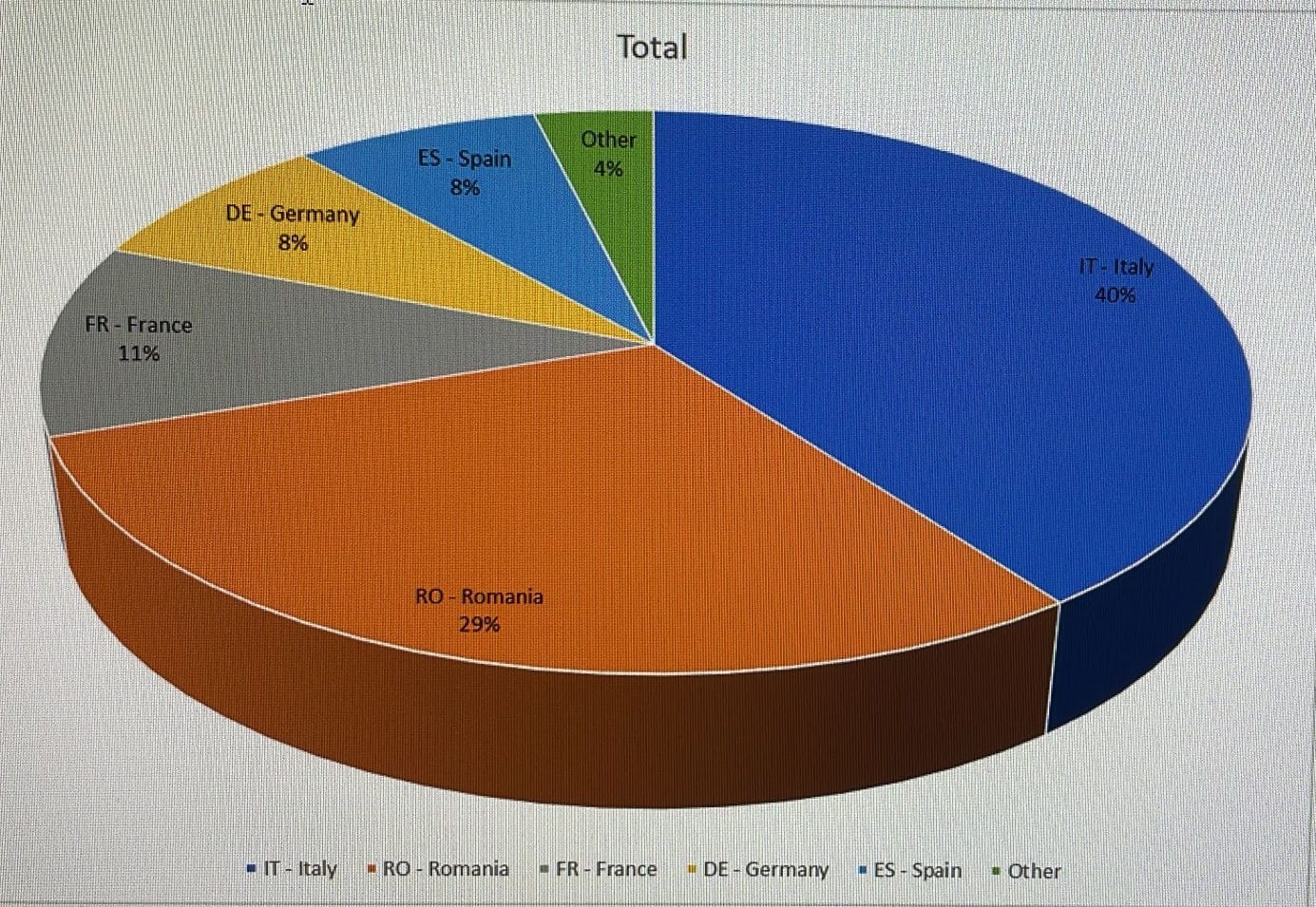 Ca piață de desfacere, aproape 30 la sută din producție este destinată României, în timp ce 40% merge în Italia. Restul de 30 la sută se împarte între piețele din Franța, Germania, Spania și altele.
