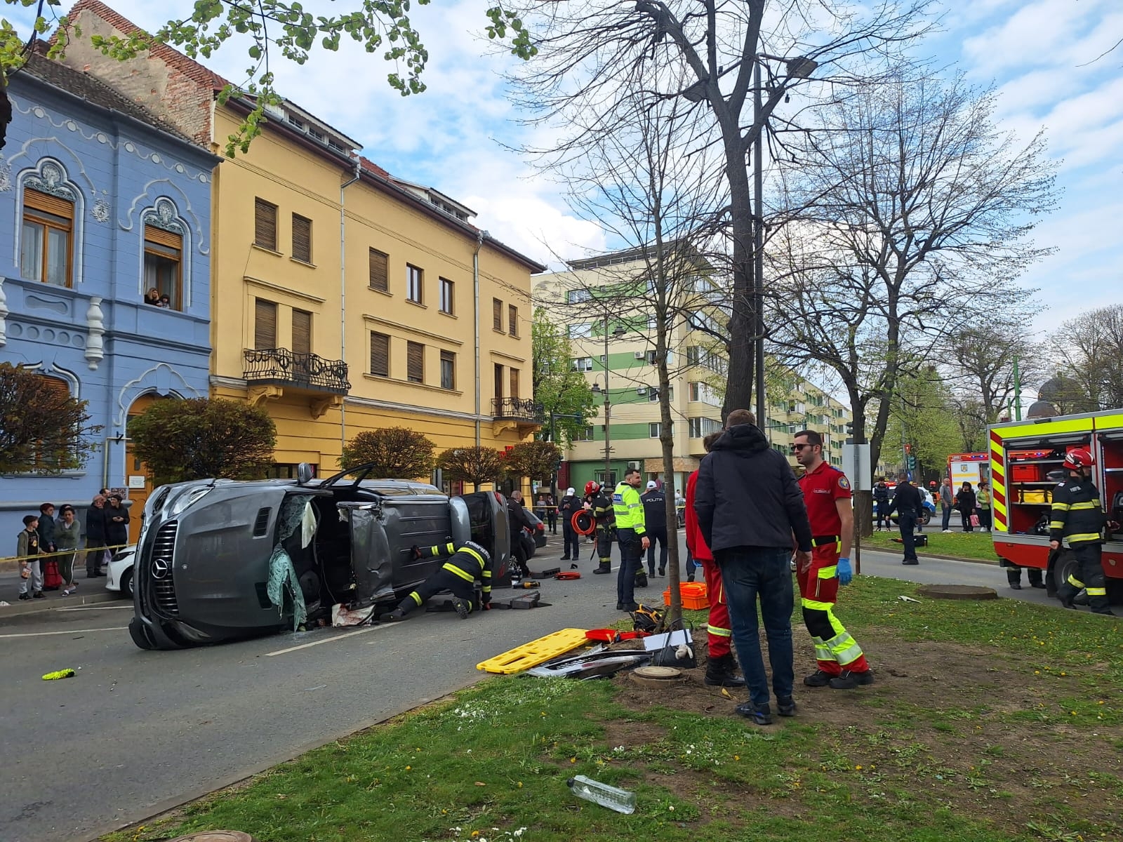 UPDATE. FOTO/VIDEO. Mașină răsturnată pe bulevardul Revoluției. O tânără de 19 ani, rănită în urma accidentului