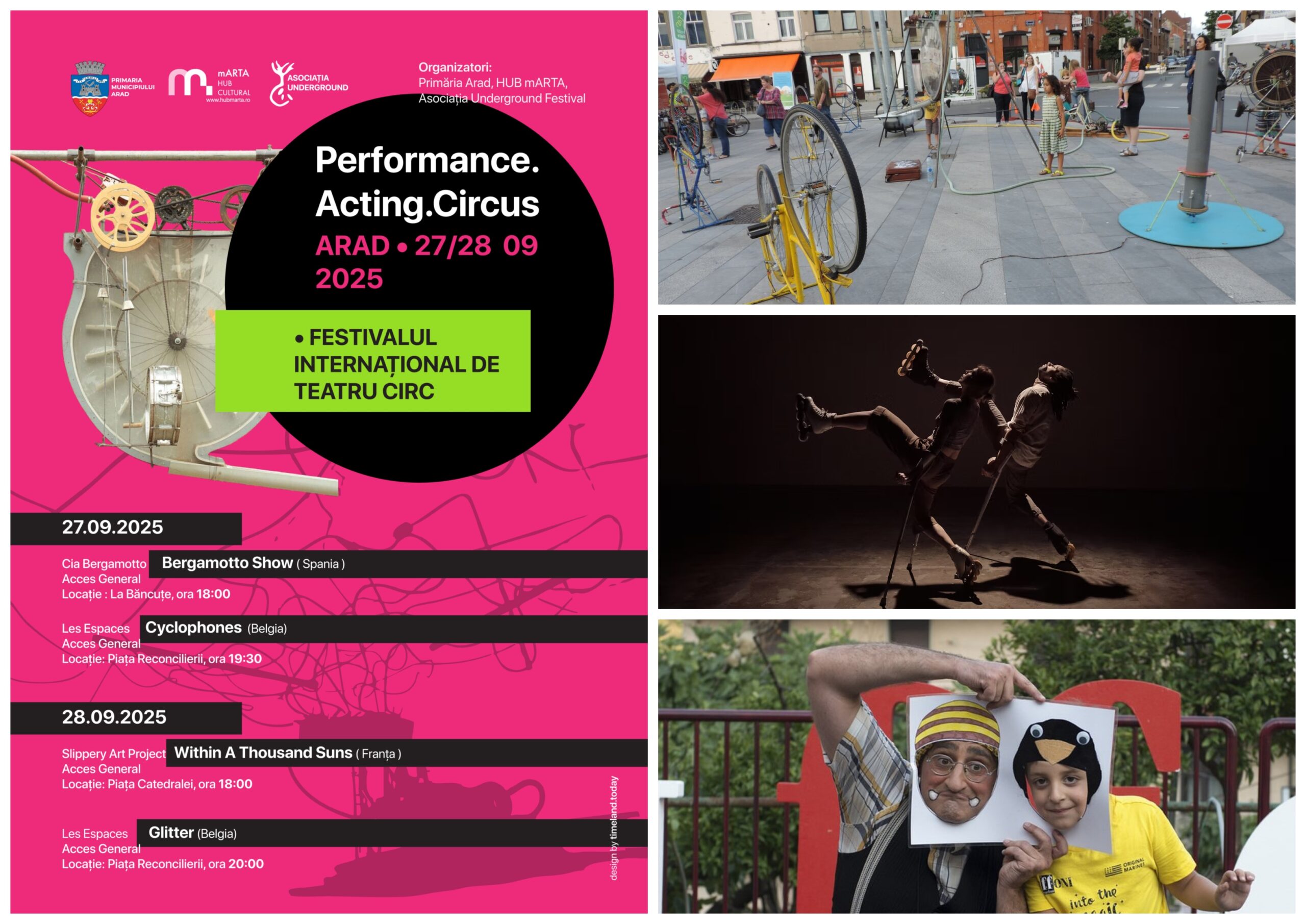 Timp de două zile, arădenii de toate vârstele vor fi așteptați să urmărească patru spectacole ale unor artiști de teatru-circ din Spania, Belgia și Franța, în parcurile și piețele municipiului. Aflat la ediția a doua, Festivalul Internațional de Teatru Circ se va desfășura pe 27 și 28 septembrie, în Parcul Eminescu, Piața Catedraleiși Parcul Reconcilierii.