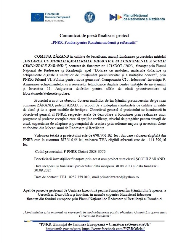 Final de proiect PNRR la Zărand