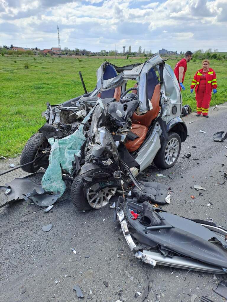 “În urma accidentului a rezultat o victimă (un bărbat în vârstă de aproximativ 40 de ani), încarcerată, în stare de inconștiență. Pompierii au acționat pentru extragerea victimei dintre fiarele contorsionate ale autoturismului. Din păcate, victima a suferit leziuni incompatibile cu viața, iar decesul a fost declarat de către medicul echipajului SMURD TIM. Pompierii arădeni au acționat și pentru asigurarea măsurilor de prevenire și stingere a incendiilor la locul evenimentului.”, a transmis Ruxandra Klein, purtătorul de cuvânt al ISU Arad.