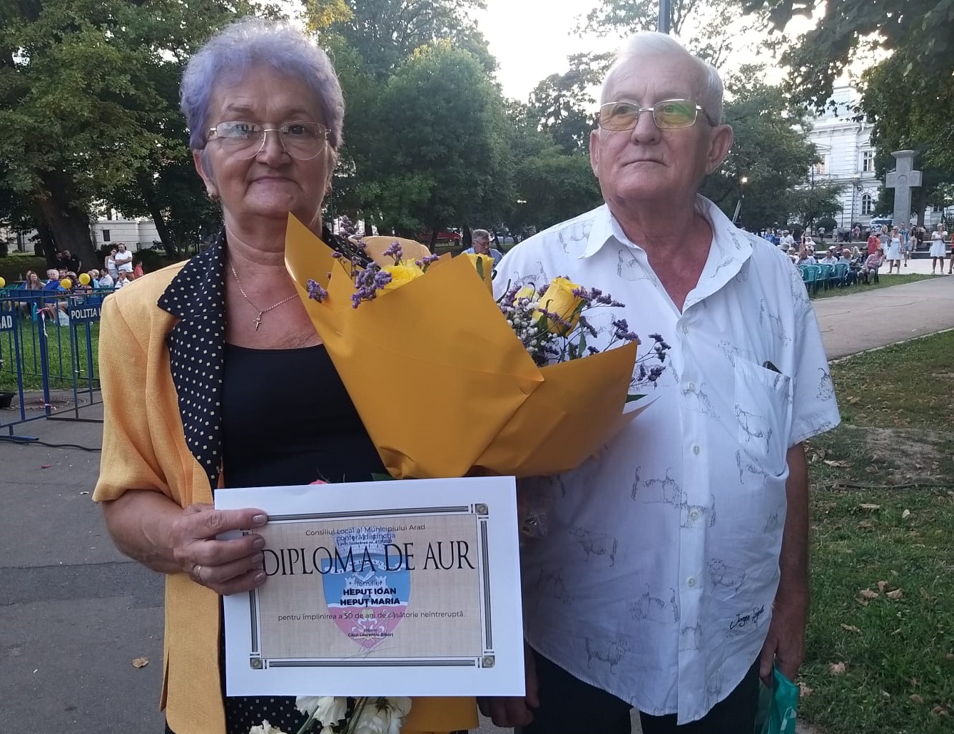 Ziua de joi, 24 august, din cadrul sărbătorii oraşului, le-a fost dedicată seniorilor arădeni. Cel mai aşteptat moment a avut loc în Parcul Eminescu şi a constat în decernarea Diplomelor de Aur pentru 198 de cupluri care anul acesta au împlinit 50 de ani de căsătorie neîntreruptă.