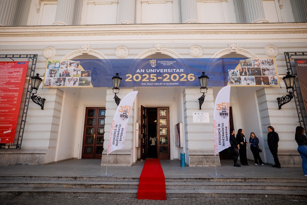 Șirul manifestărilor dedicate noului început de an universitar a continuat la Teatrul de Stat „Ioan Slavici” din Arad. Într-o manieră elegantă și emoționantă, rectorul UVVG le-a transmis studenților încredere și curaj la început de drum. „Vă mulțumesc, în numele meu și al colegilor mei, că ați ales Universitatea de Vest „Vasile Goldiș” din Arad. Știu că pentru mulți dintre voi a fost o decizie luată împreună cu părinții, o decizie importantă care marchează un pas esențial în parcursul vostru. Este un pas care ne responsabilizează și pe noi, cadrele didactice, să vă oferim nu doar educație de calitate, ci și sprijin, îndrumare și modele de urmat. Le mulțumesc colegilor din corpul academic pentru profesionalism și dăruire. Prin fiecare curs, încercăm să fim mai mult decât profesori: să fim mentori, repere și, uneori, chiar sprijinul discret pe care îl oferă un părinte. Ne dorim să vă fim aproape pas cu pas, să vă transmitem nu doar cunoștințe teoretice, ci și valori precum încrederea, voluntariatul, dedicarea și dorința de a construi împreună. Așa cum spunea Vasile Goldiș, „prin noi înșine”, universitatea trăiește și crește. Prin această motivație, Universitatea de Vest „Vasile Goldiș” rămâne o familie, formată din profesori, angajați și studenți deopotrivă, uniți prin aceeași viziune și același spirit de deschidere,” sublinia prof. Coralia Adina Cotoraci, recunoscută ca liderul care dezvoltă UVVG ca pe o adevărată familie!