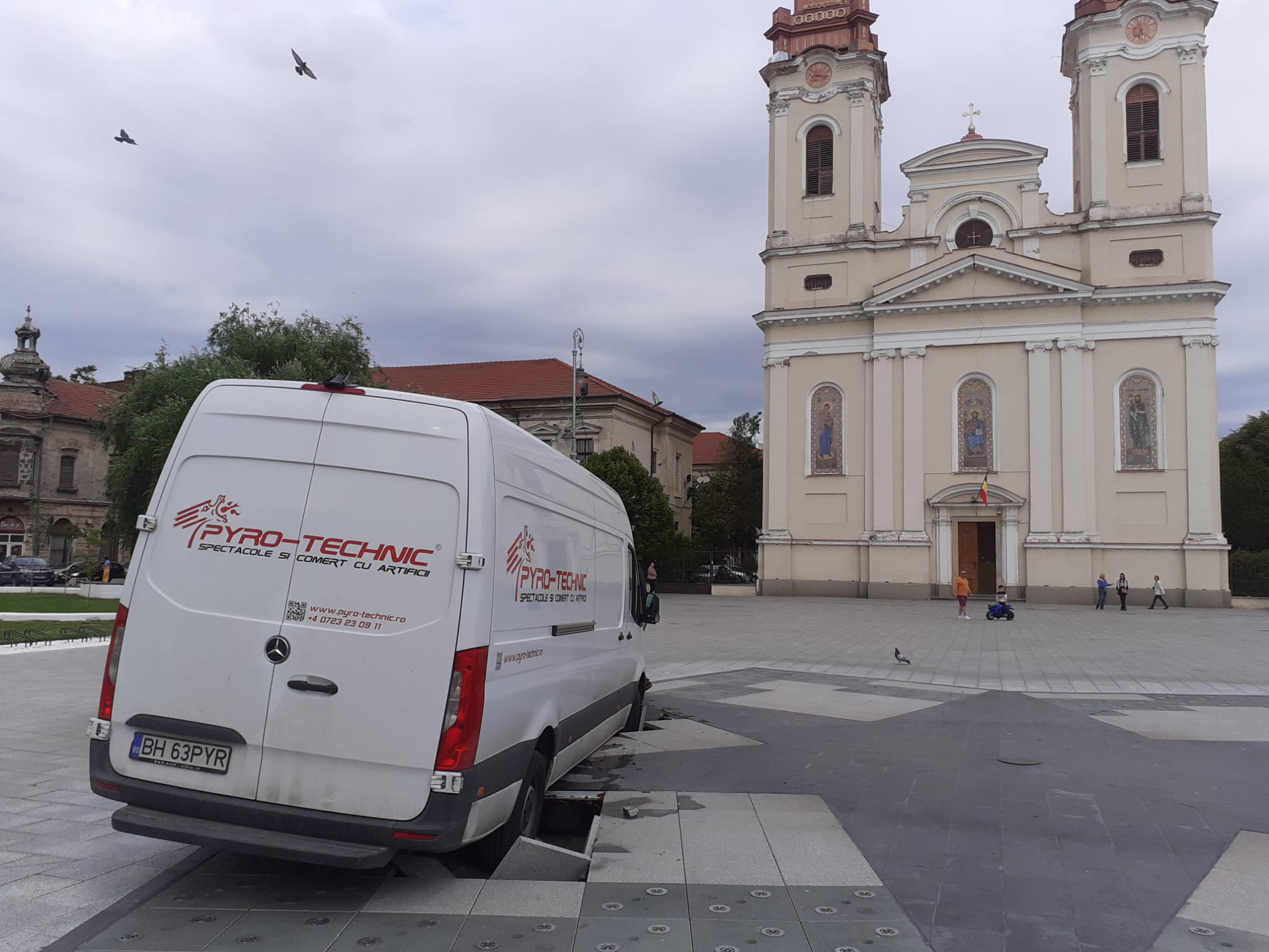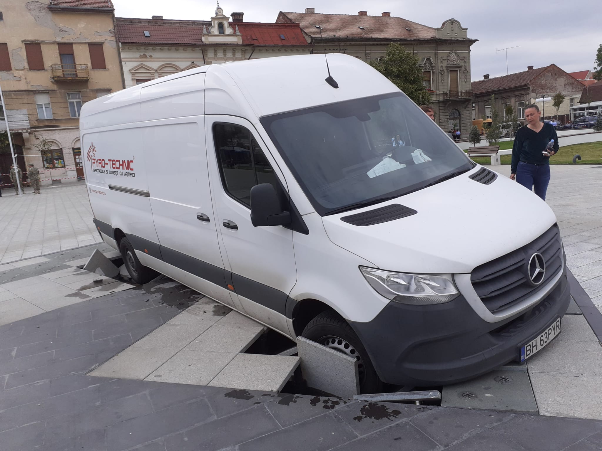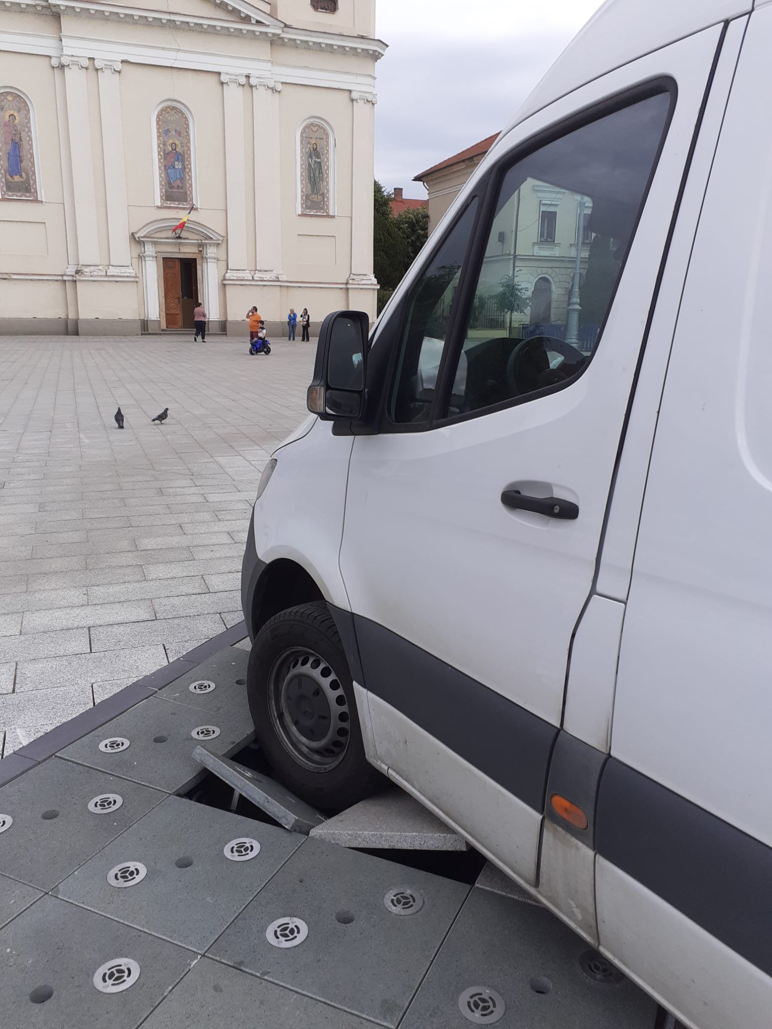 Deștept șofer! Nu a fost la târgul de Paști sa vadă că e o fântână acolo?