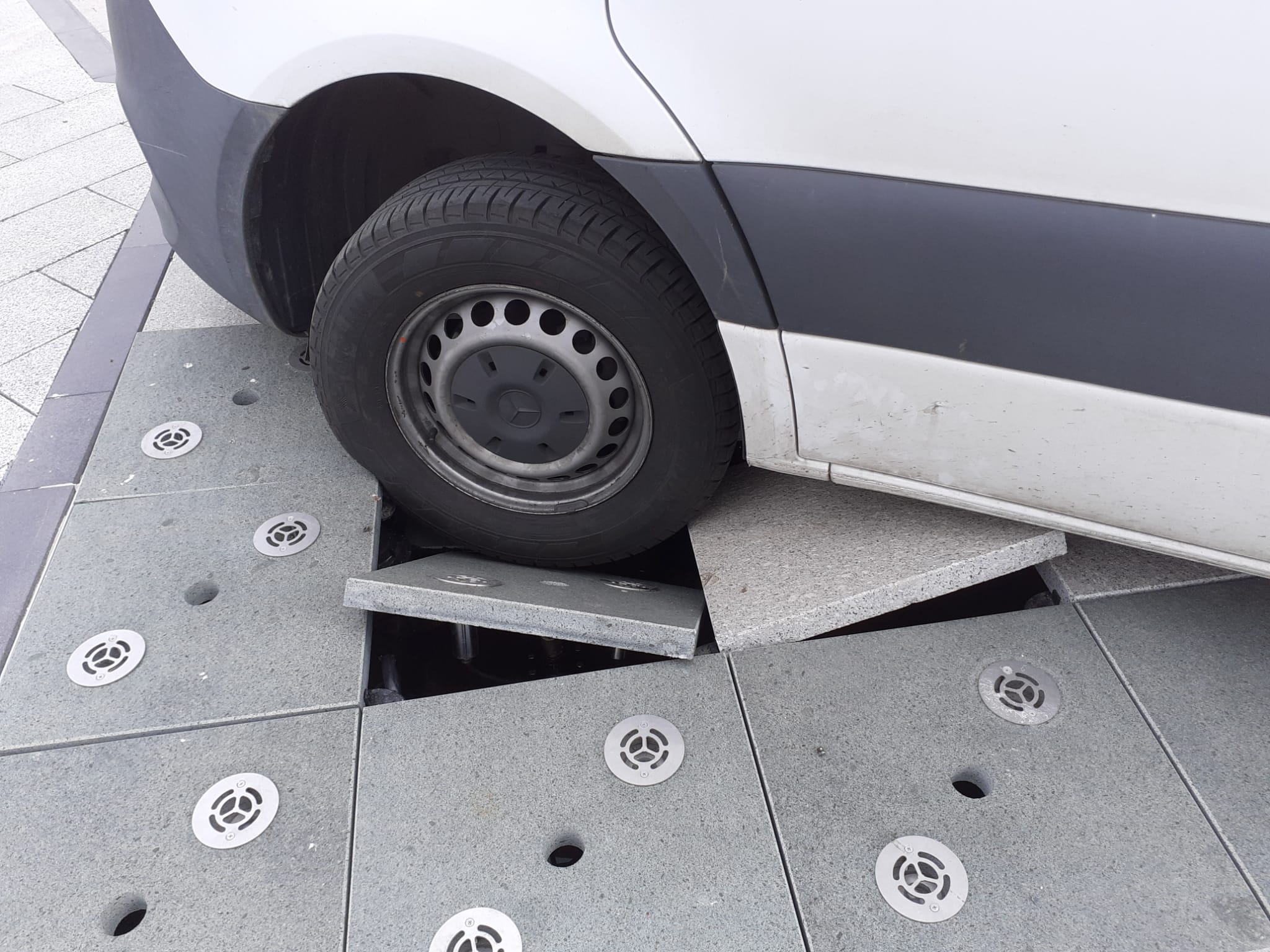 În Piața Mare din Sibiu țâșnește apa din zeci de astfel de aspersoare de pavaj. Trec mașini de marfă, trec care alegorice la festivaluri, trec mașini de epocă la parade, ba chiar și tehnică militară la festivități militare.. Niciodată nu s-a mișcat vreo dală.