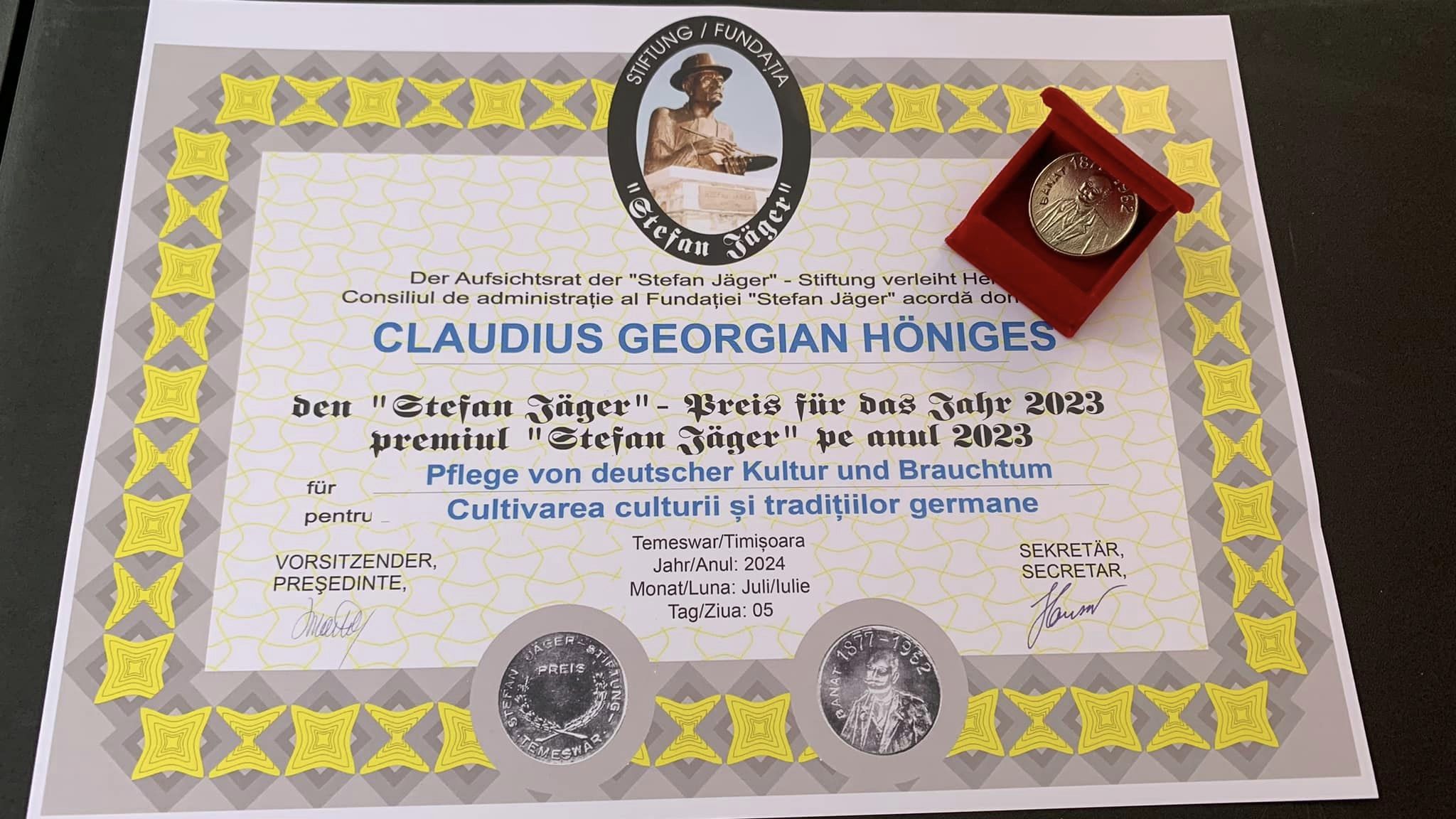 Înainte de momentele artistice oferite de ansambluri, pe scena din Parcul „Katharina Ackermann” au urcat Bettina Szellner – noua președintă a Foumului Democrat al Germanilor din România – filiala Arad, respectiv Pompilia Szellner – președinte de onoare al Centrului Cultural Banat-JA. Aceștia au conferit Premiul Stefan Jäger lui Claudius Höniges, coordonatorul centrului cultural Banat-JA Sântana, pentru contribuția adusă de-a lungul anilor la păstrarea și promovarea tradițiilor etniei germane în Sântana și în județul Arad. Premiul Stefan Jäger este acordat de către fundația omonimă unor tineri care se evidențiază în mod deosebit în cultivarea și păstrarea tradițiilor germanilor din Banat și a limbii germane. Fundația a fost fondată în 1996 de către Asociația Formațiunea Bănățeană de Cooperare Internațională BANATIA.