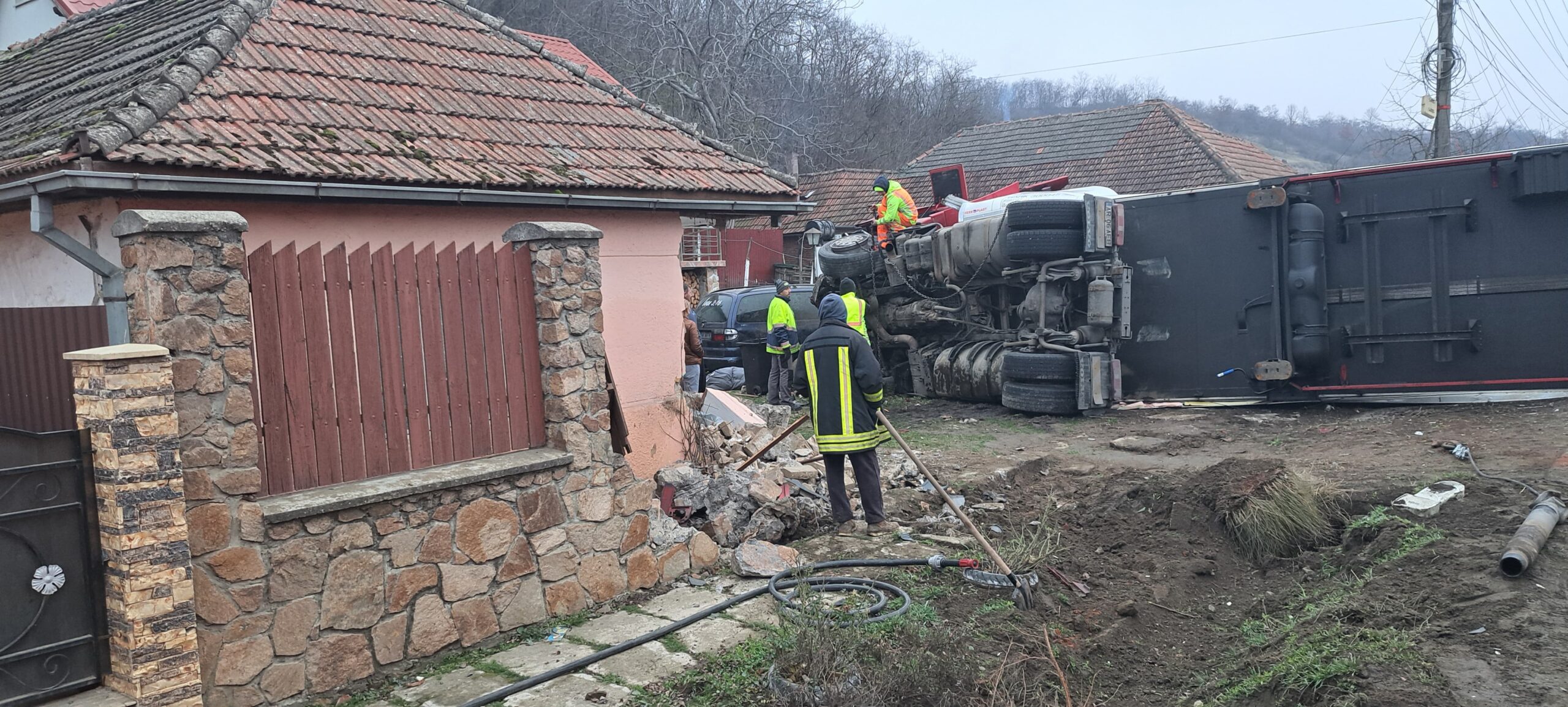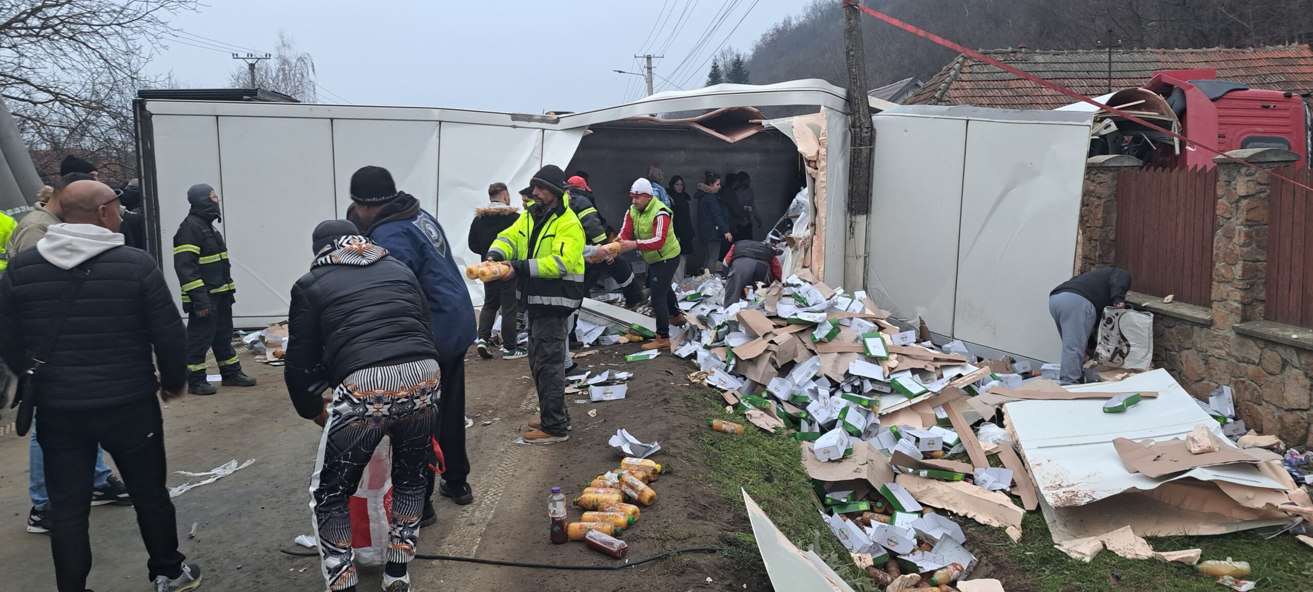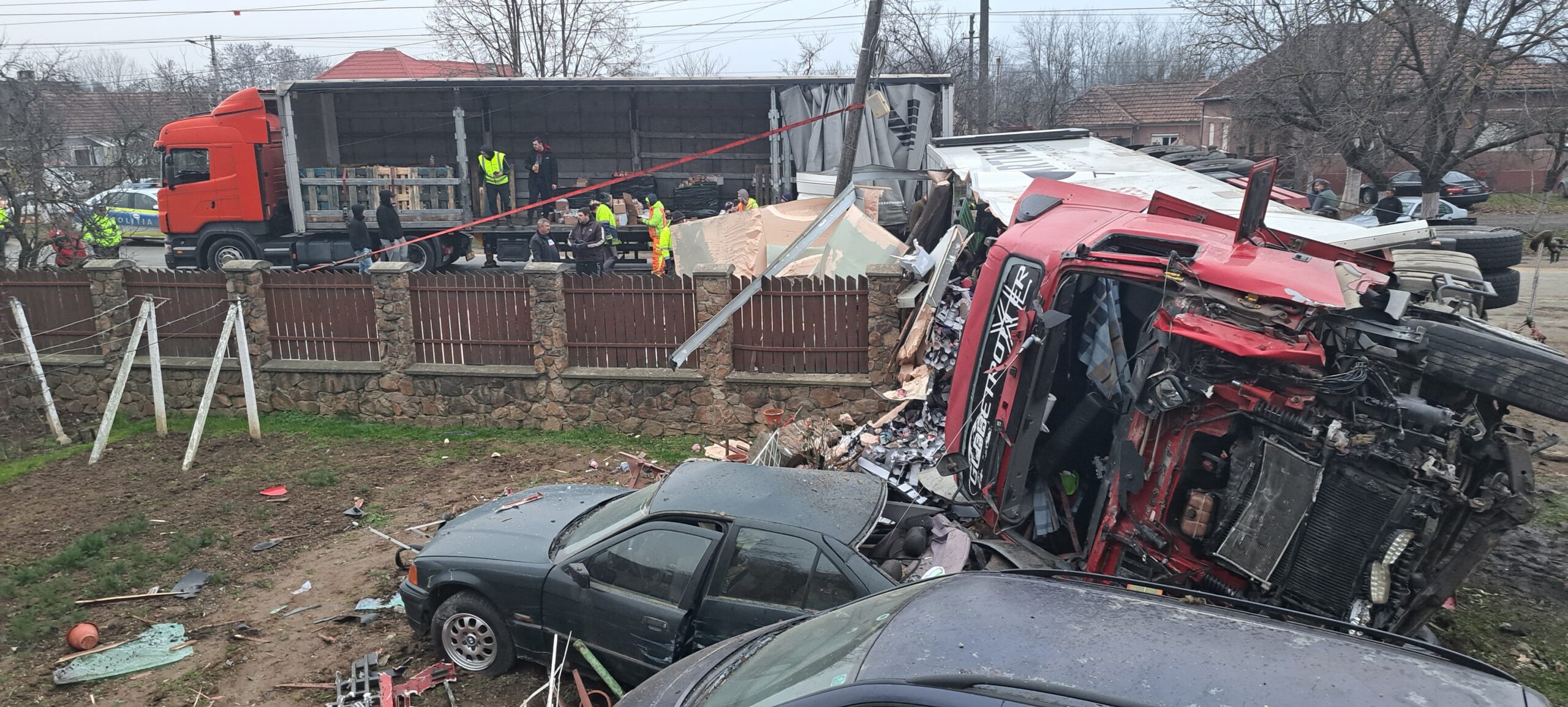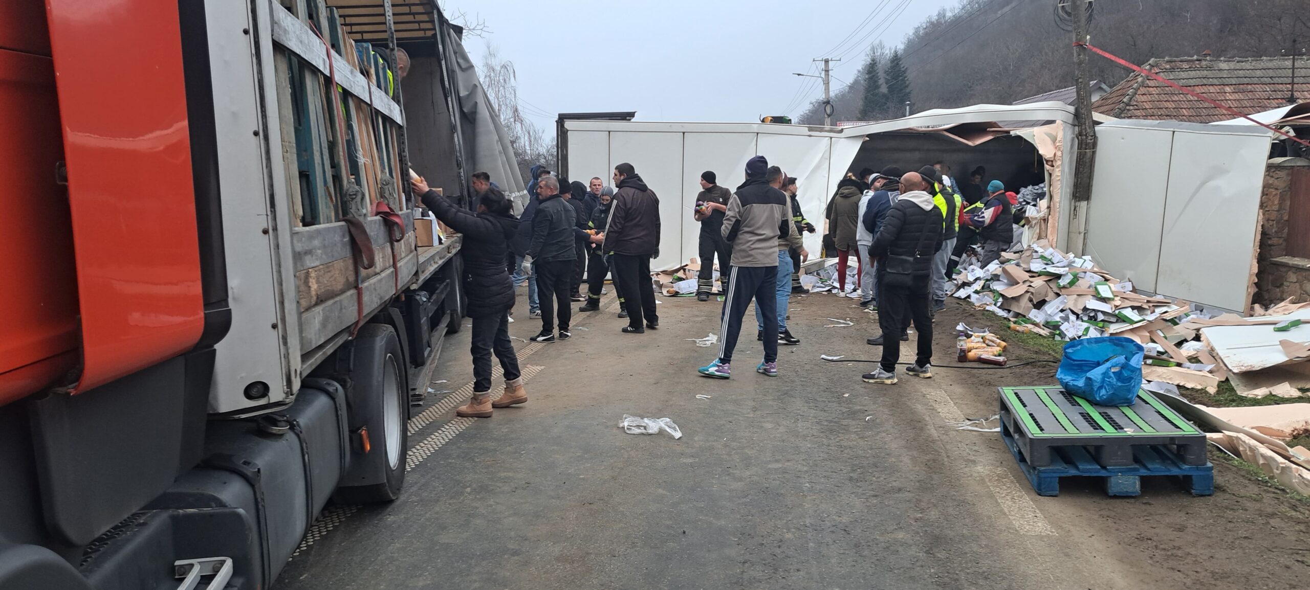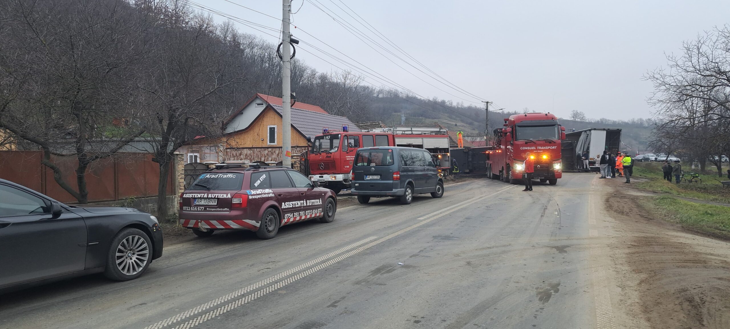DN 7 e blocat la Lipova! Un TIR s-a răsturnat de-a curmezișul șoselei