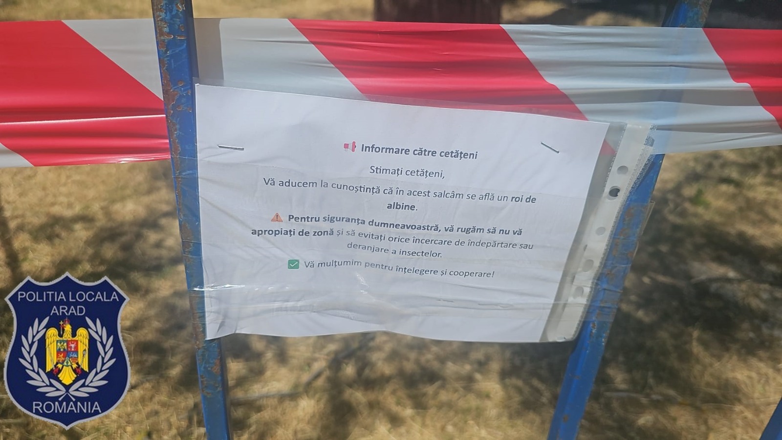 Un roi de albine sălbatice a fost identificat într-un copac aflat lângă un parc pentru copii situat la intersecția străzilor Constituției și Câmpia Turzii. Zona a fost izolată de Poliția Locală Arad, pentru a preveni orice incident, întrucât în imediata apropiere se află o grădiniță și un loc de joacă.