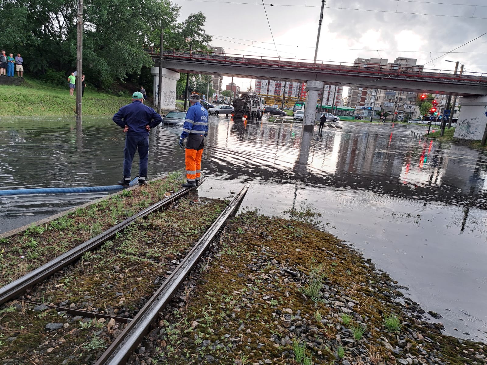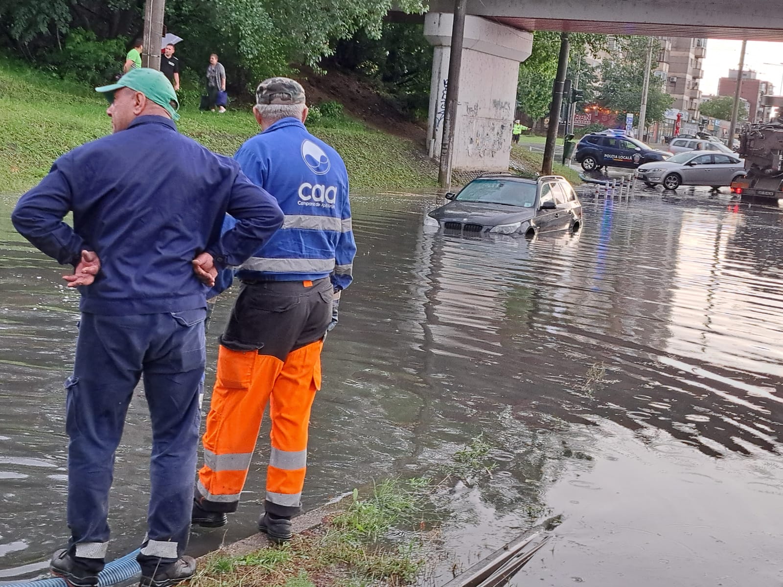 Pompele Companiei de Apă Arad funcționează la capacitate maximă, dar cantitatea apei căzută în atât de scurt timp a făcut ca pasajul de pe Voinicilor și zona Gemi Center să fie din nou inundate. Unii șoferi au rămas pur și simplu blocați în trafic, apa trecând de pragurile ușilor de la mașini.
