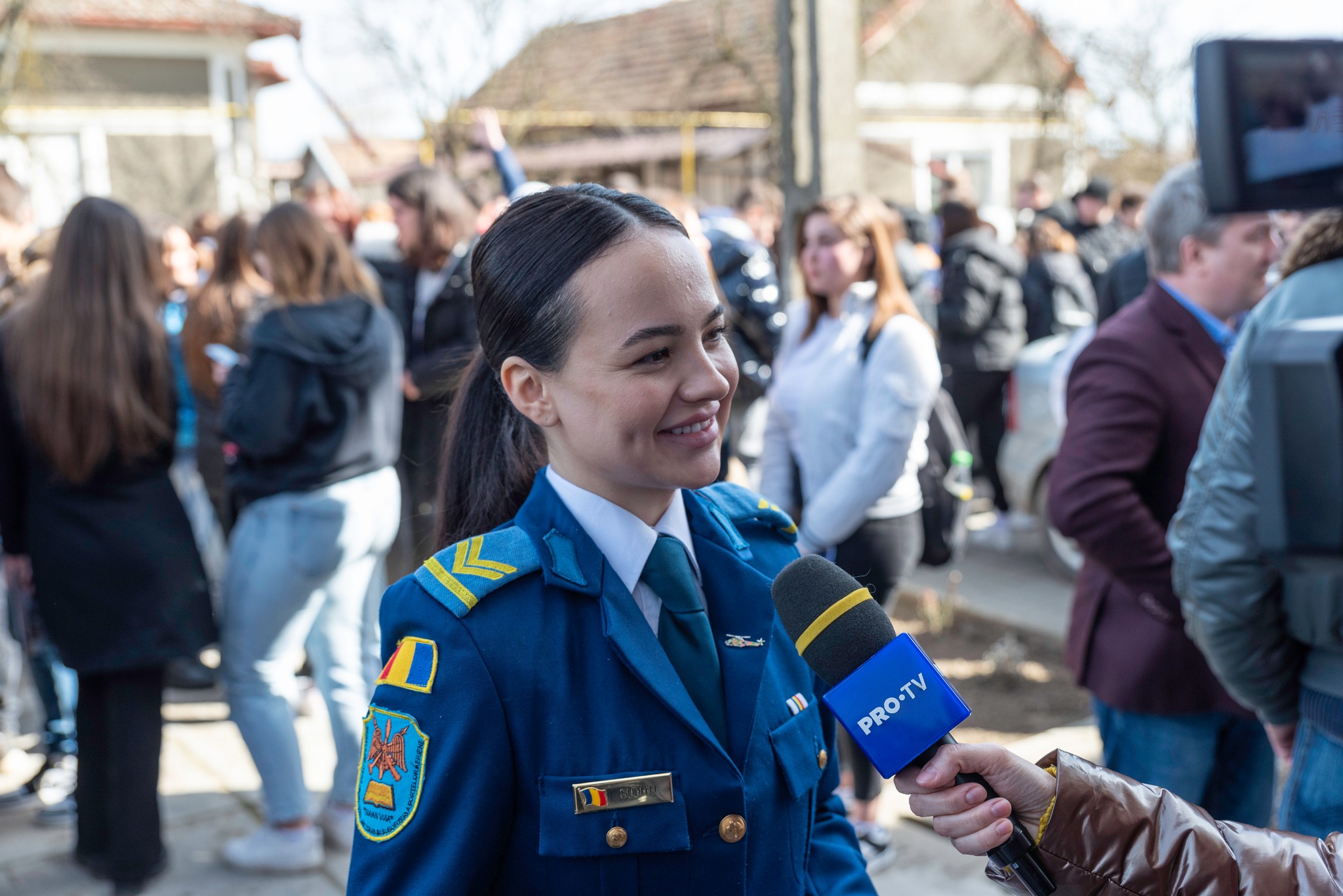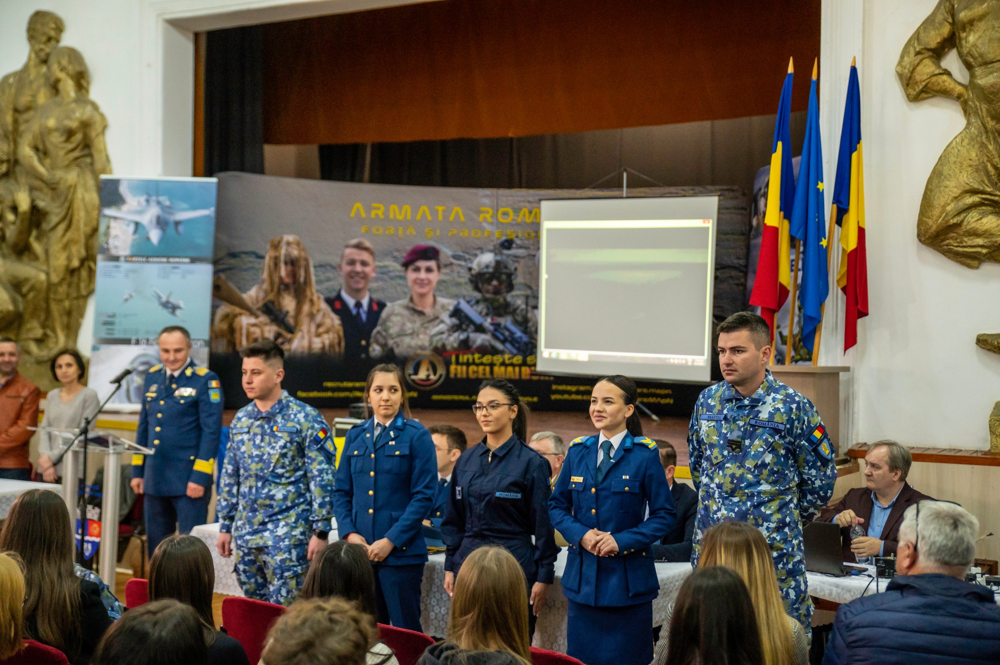 „Ne bucurăm că avem posibilitatea să fim astăzi aici și să reprezentăm Forțele Aeriene, pentru că trebuie să venim în mijlocul elevilor. E o perioadă în care elevii au multe posibilități și au de unde să își aleagă domenii de activitate. Noi am venit aici să le oferim o altă posibilitate, să le oferim șansa să urmeze o carieră militară. Am observat că există interes, copiii sunt interesați de zbor, de aviație”, a declarat căpitanul Silviu Banciu, din cadrul Statului Major al Forţelor Aeriene.