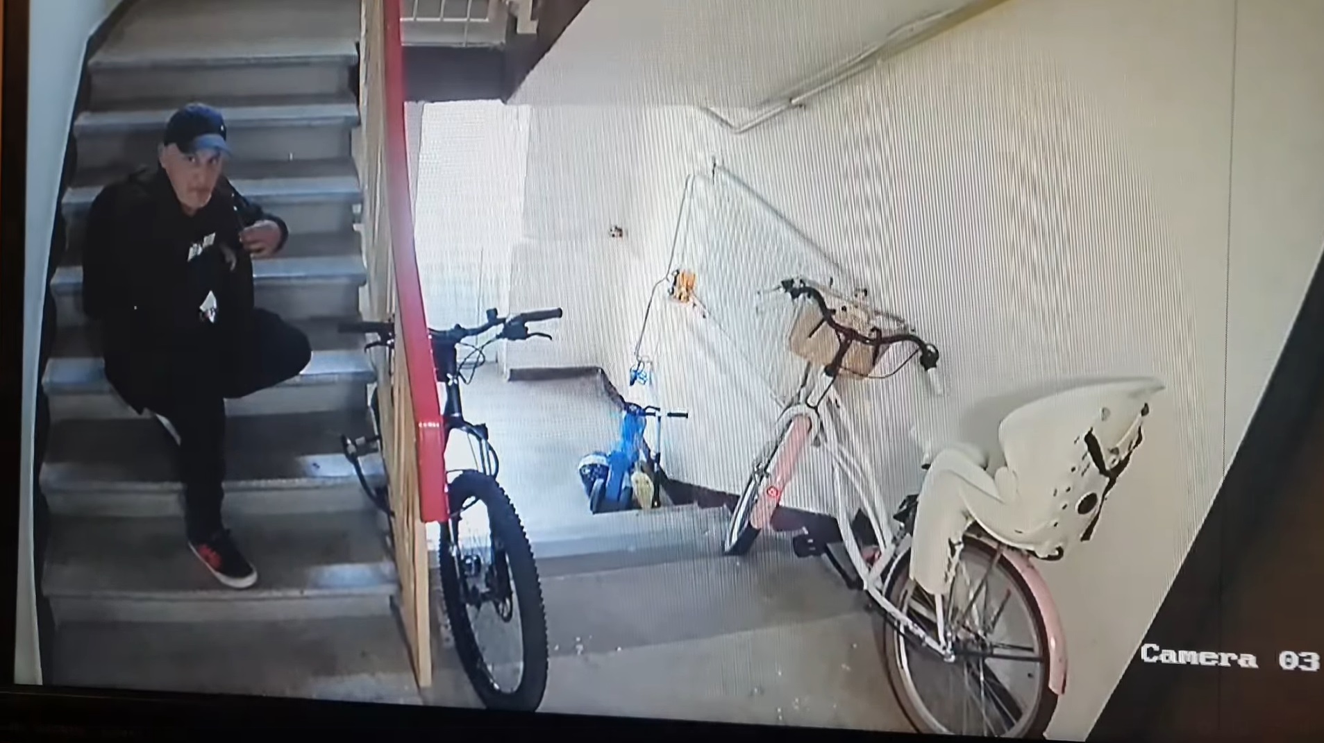 În filmarea de pe camerele de supraveghere ale blocului se vede cum cel care a furat bicicleta aşteaptă ca un locatar al blocului să deschidă uşa încuiată cu un interfon. După ce uşa a fost deschisă, hoţul opreşte uşa şi apoi intră în bloc. Acesta a urcat scările până a dat de bicicleta B-Twin şi, fără să îşi dea seama că este filmat, începe să desfacă lacătul cu care bicicleta era legată de balustradă. La un moment dat, observă că este filmat, se ridică şi încearcă să schimbe poziţia camerei de luat vederi. În final, după ce a desfăcut încuietoarea, iese în grabă cu bicicleta din bloc, se urcă pe ea şi pleacă.
