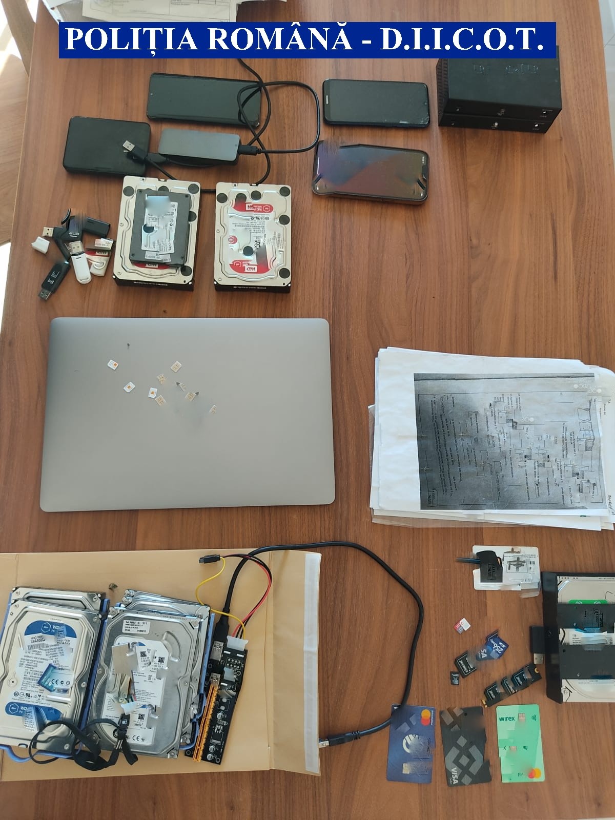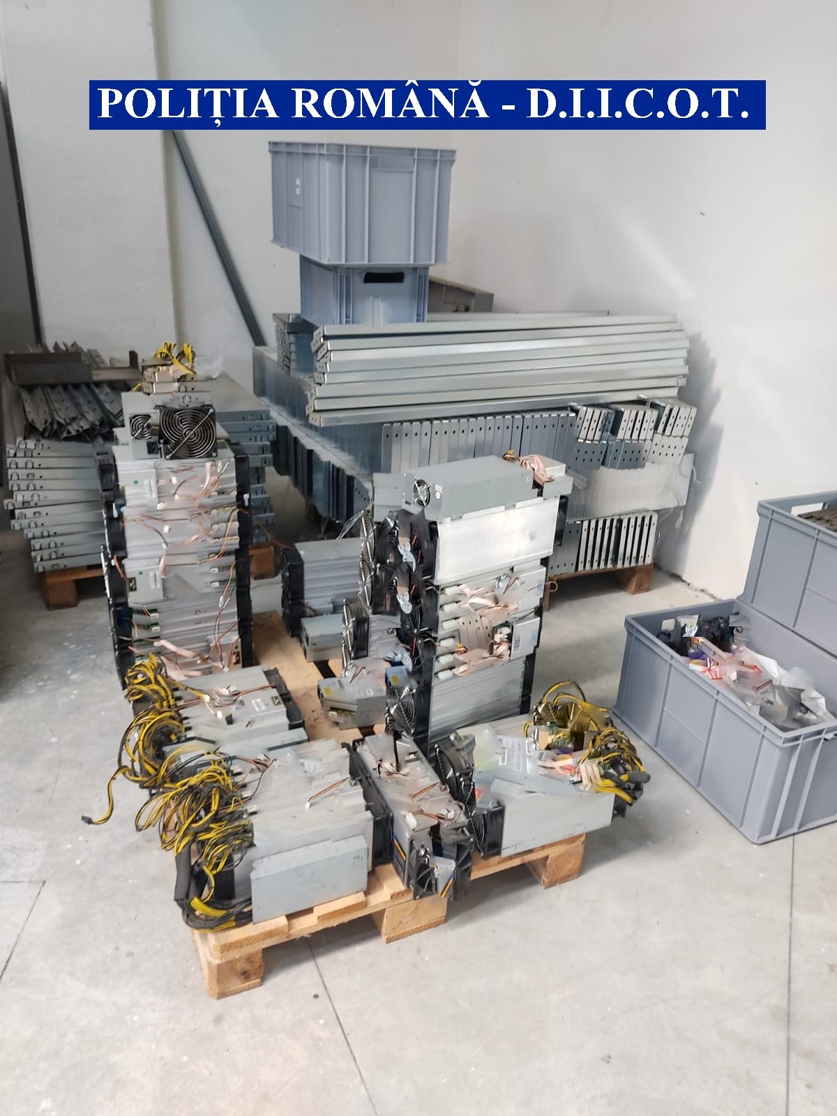 „La data de 21 octombrie, procurorii DIICOT Timişoara împreună cu ofiţeri de poliţie judiciară din cadrul Serviciului de Combatere a Criminalității Informatice din Timișoara şi Serviciului de Combatere a Criminalității Organizate Arad au efectuat două percheziţii pe raza județelor Timiș și Arad, în urma cărora au fost ridicate, 10 HDD, patru carduri de memorie, un portofel hardware, șase stick-uri USB, șapte cartele SIM, un laptop, trei carduri pentru criptomonede, precum și suma de 12.100 de euro. Totodată, au fost lăsate în custodia proprietarului halei din municipiul Arad, 370 de dispozitive de minat, împreună cu accesoriile necesare funcționării acestora, precum și 62 de unități centrale PC.