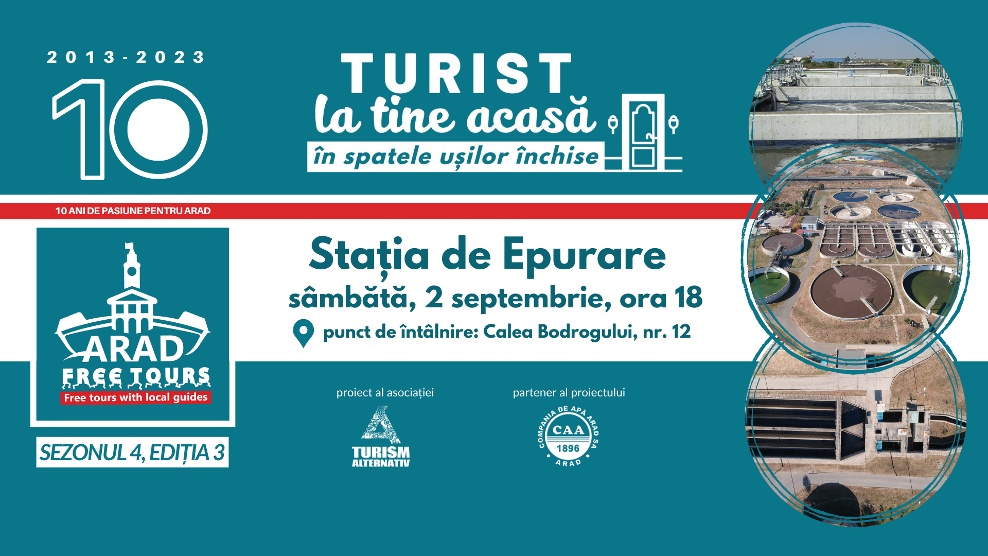 Asociația Turism Alternativ, prin proiectul Arad Free Tours, vine anul acesta cu al patrulea sezon de evenimente intitulate „Turist la tine acasă”. Sub motto-ul „Află poveștile orașului!”, proiectul are ca scop oferirea de tururi ghidate atât localnicilor, cât și turiștilor care vizitează orașul. Astfel, aceștia vor avea ocazia să se familiarizeze cu istoria și poveștile mai mult sau mai puțin cunoscute ale orașului.