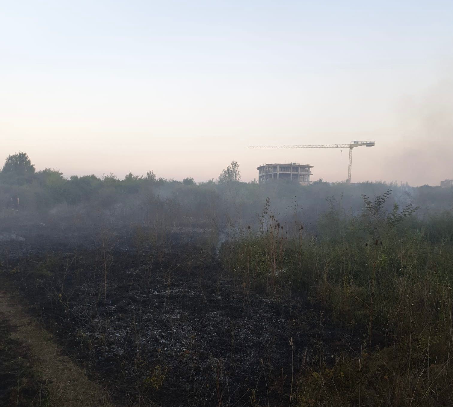 Incendiul se manifestă la vegetație uscată, pe o suprafață de aproximativ 500 de mp.