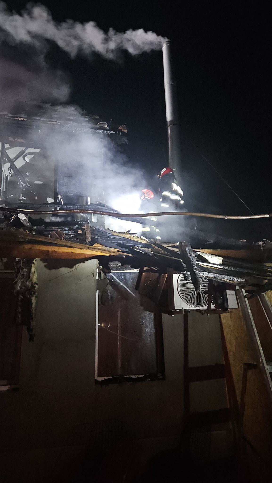 Acoperișul casei a ars pe o suprafață de aproximativ 250 de metri pătrați, iar echipajul medical prezent la faţa locului a acordat îngrijiri proprietarului casei, care a suferit un atac de panică.