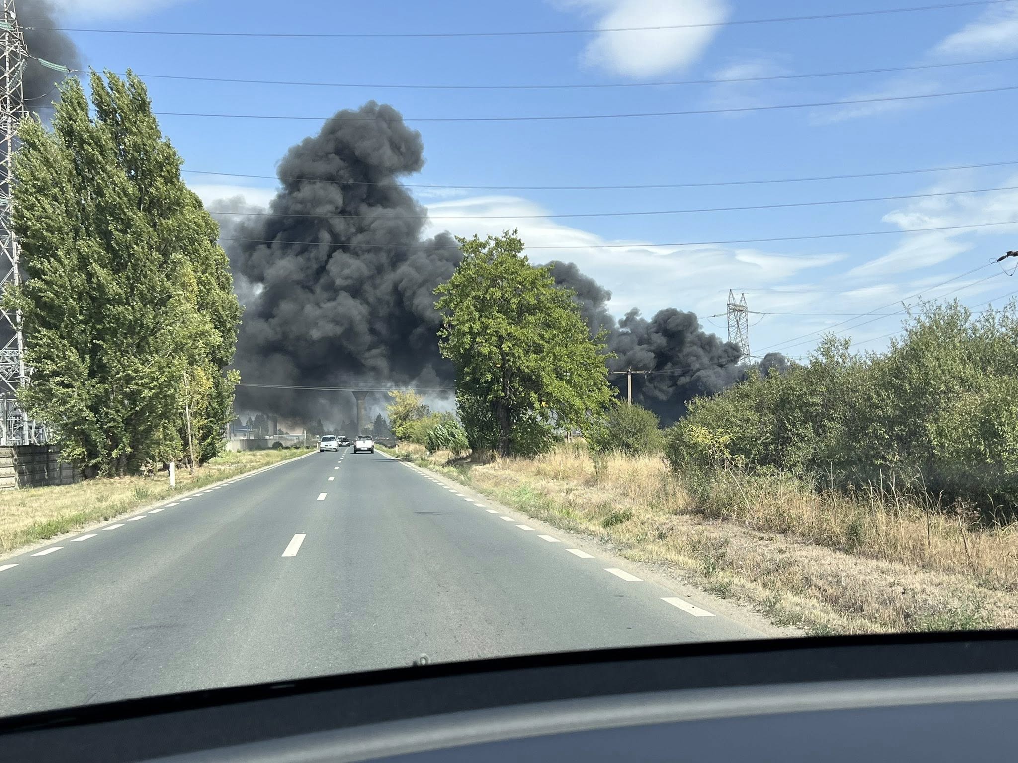 Fum negru între Municipiul Arad și localitatea Horia. Este un incendiu vegetație uscată și deșeuri menajere, cu posibilitate de propagare la mai multe autovehicule din curtea unui operator economic.