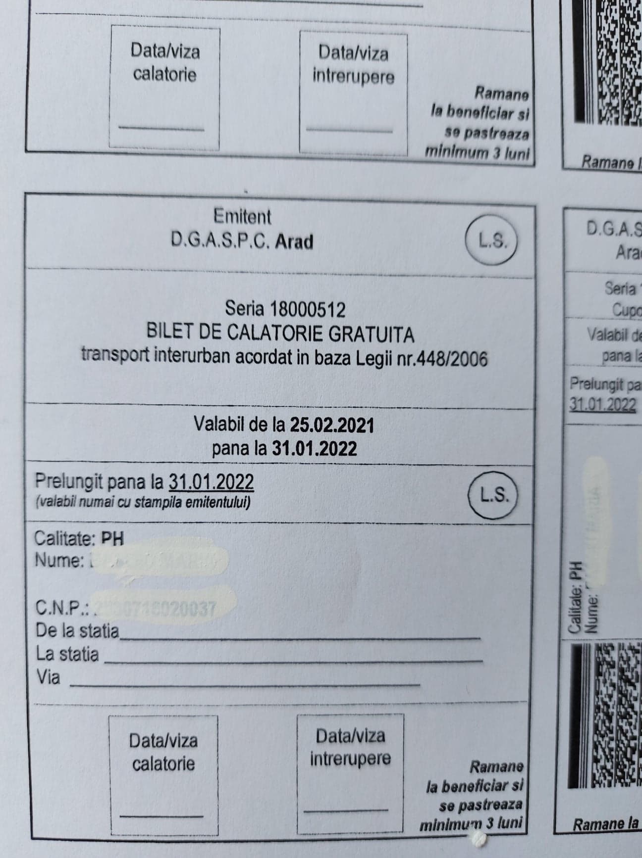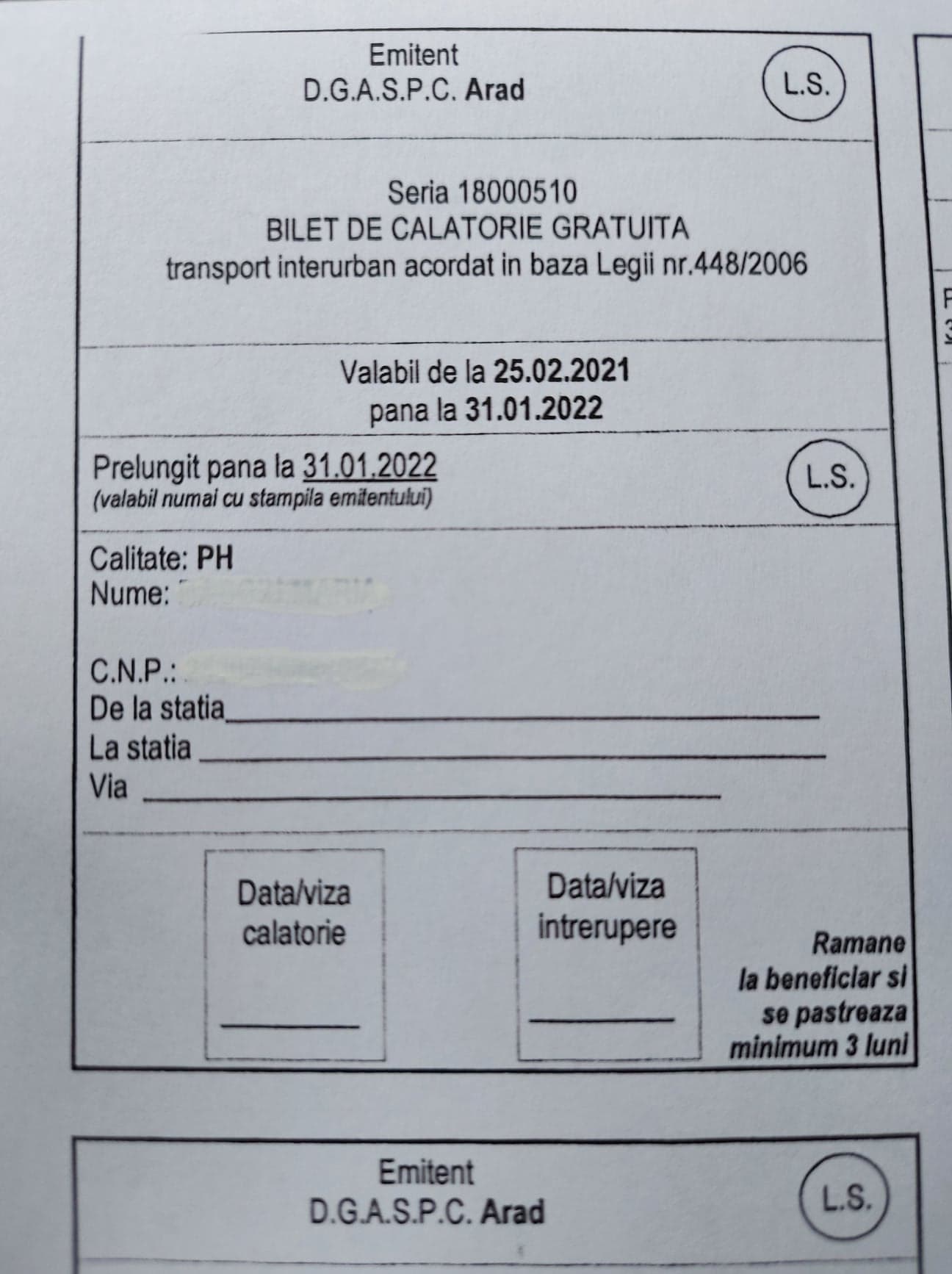 ARAD. Direcţia Generală de Asistenţă Socială şi Protecţia Copilului (DGASPC) Arad a anunţat că, începând de la 1 martie 2021, distribuite biletele de călătorie gratuite pentru persoanele cu dizabilităţi.