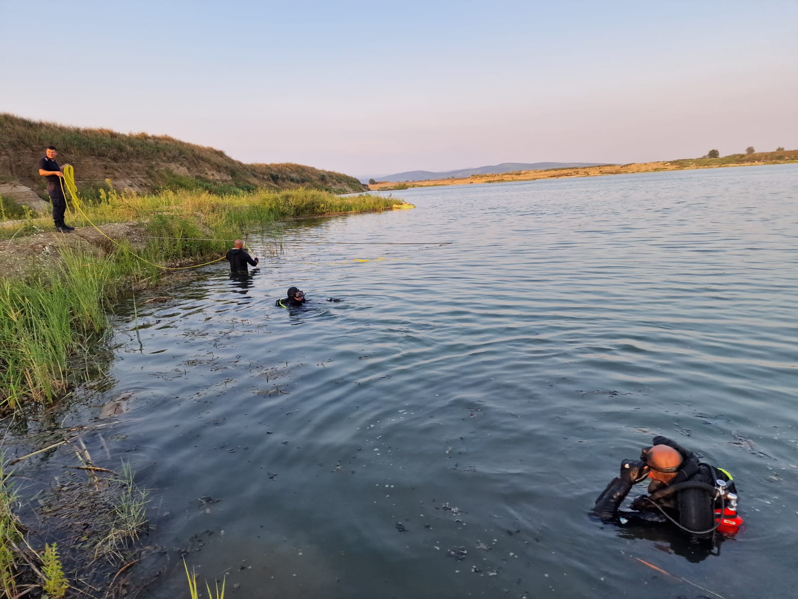 Pompierii militari arădeni intervin în aceste momente cu o autospecială care are în dotare o barcă de salvare și doi scafandri pentru căutarea unei părți din trupul persoanei decedate în urma incidentului din zona balastierei localității Zăbrani.